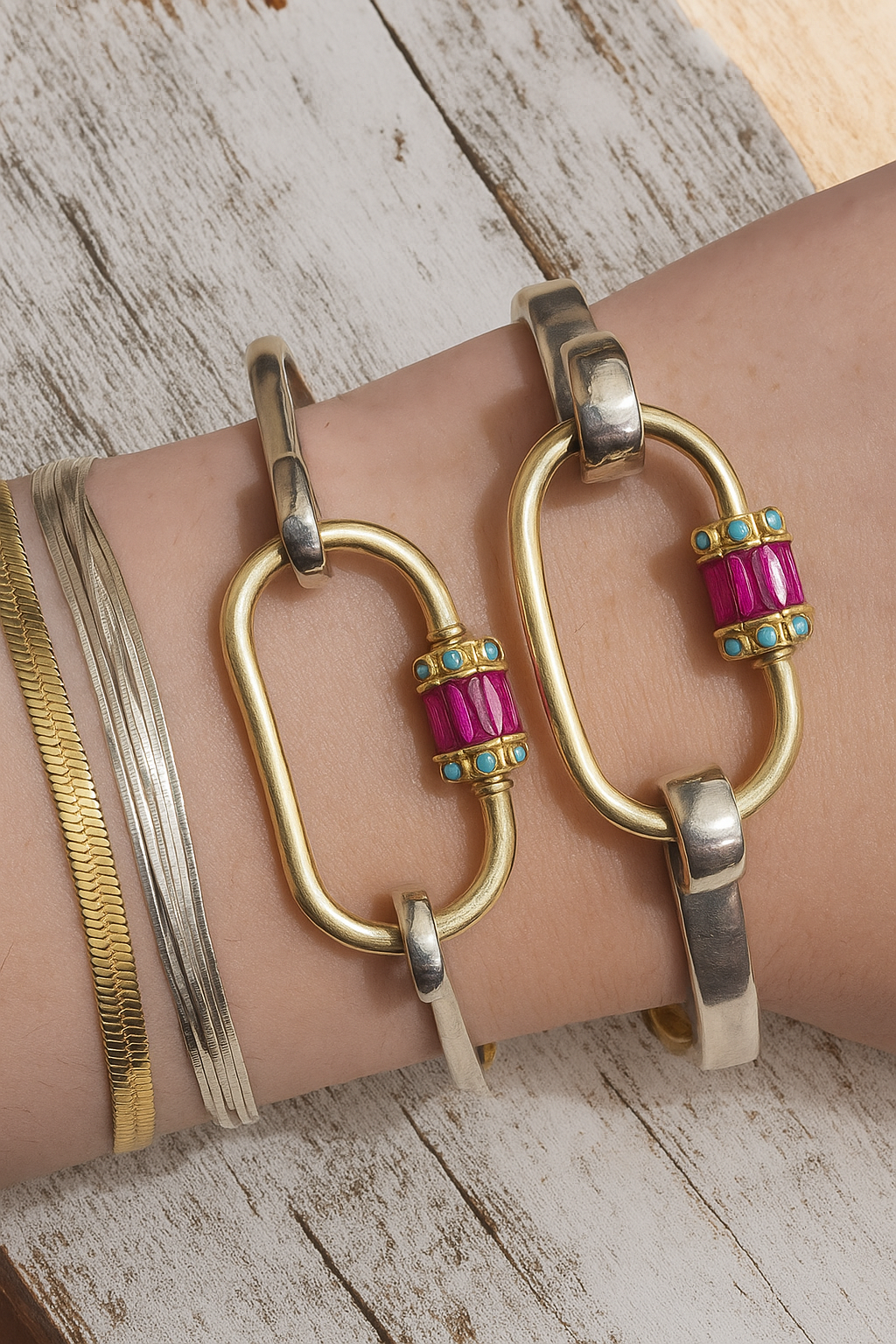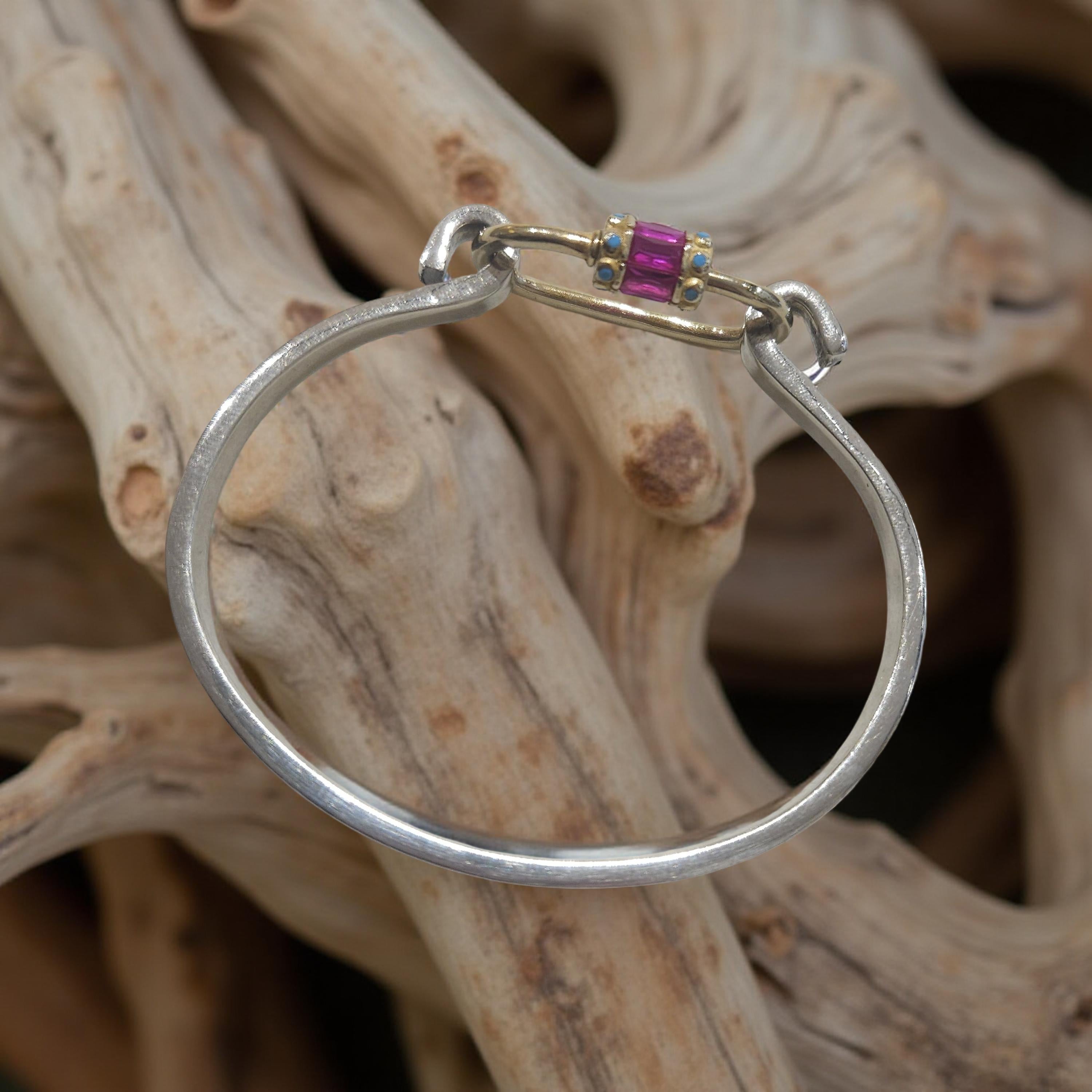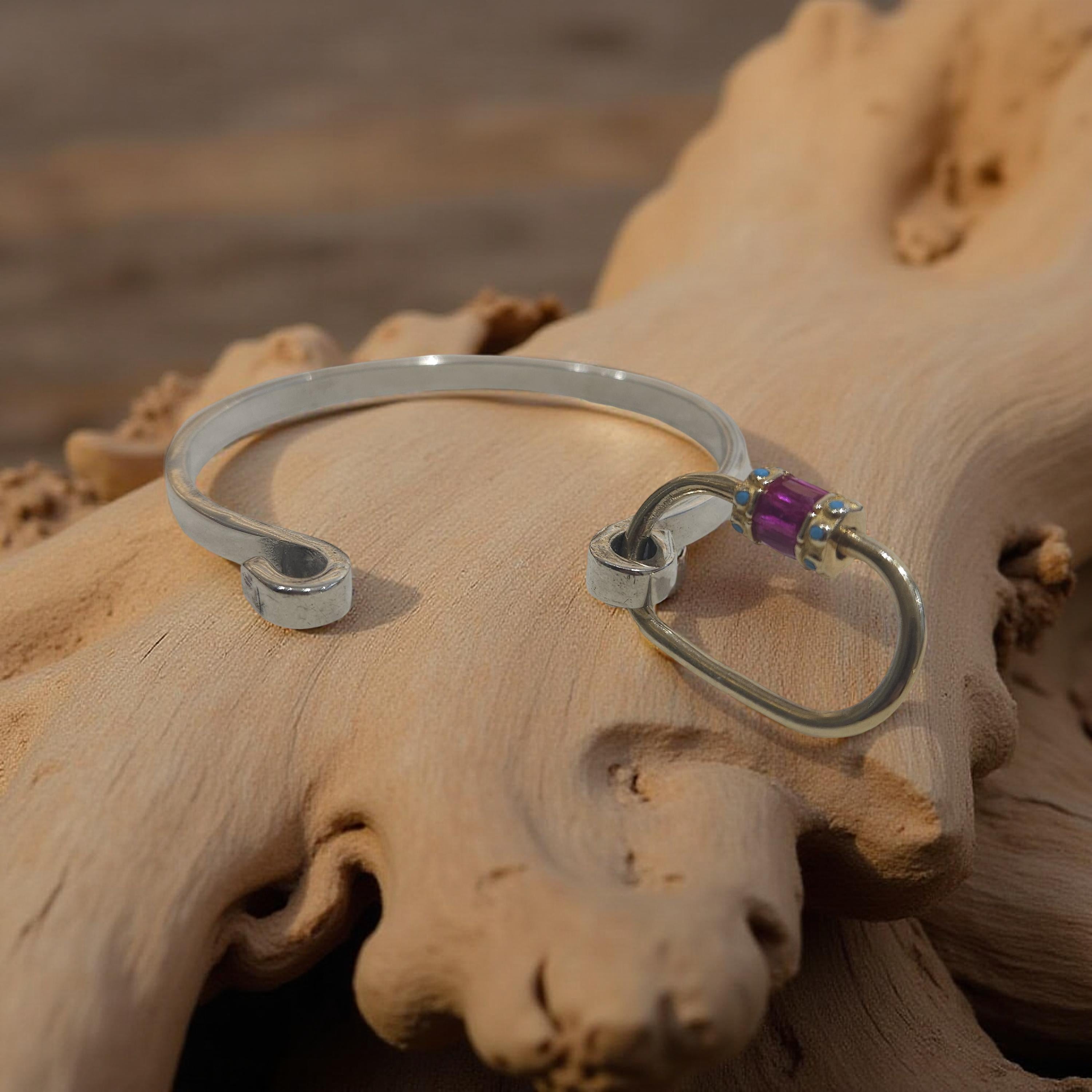 Ce jonc en argent 925 avec un mousqueton plaqué or ajoute une touche de sophistication et de style à vos tenues. Conçu à la main avec un design unique, ce jonc allie élégance et qualité. Fabriqué avec de l'argent 925 pour une durabilité et une brillance exceptionnelles, il est parfait pour toutes les occasions.