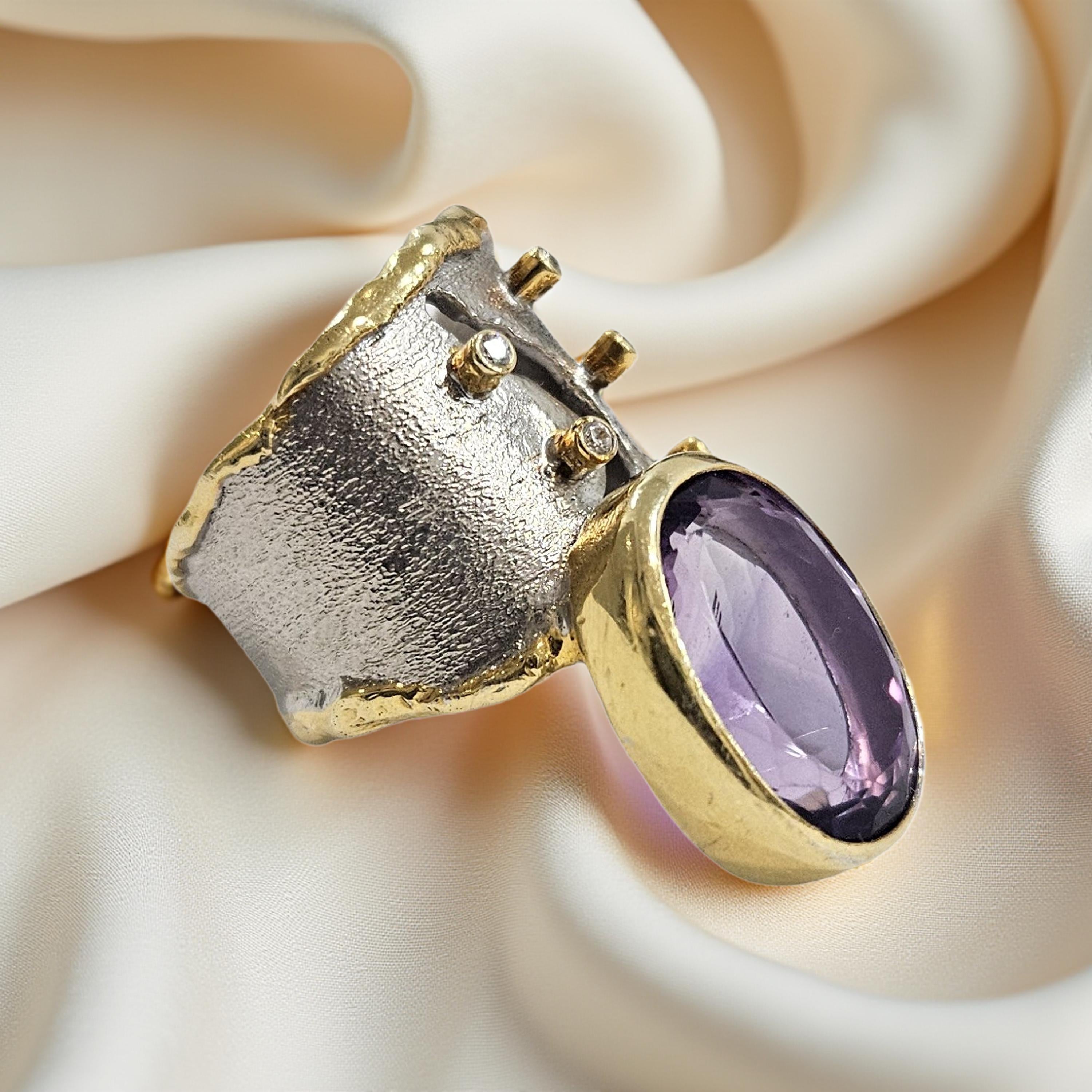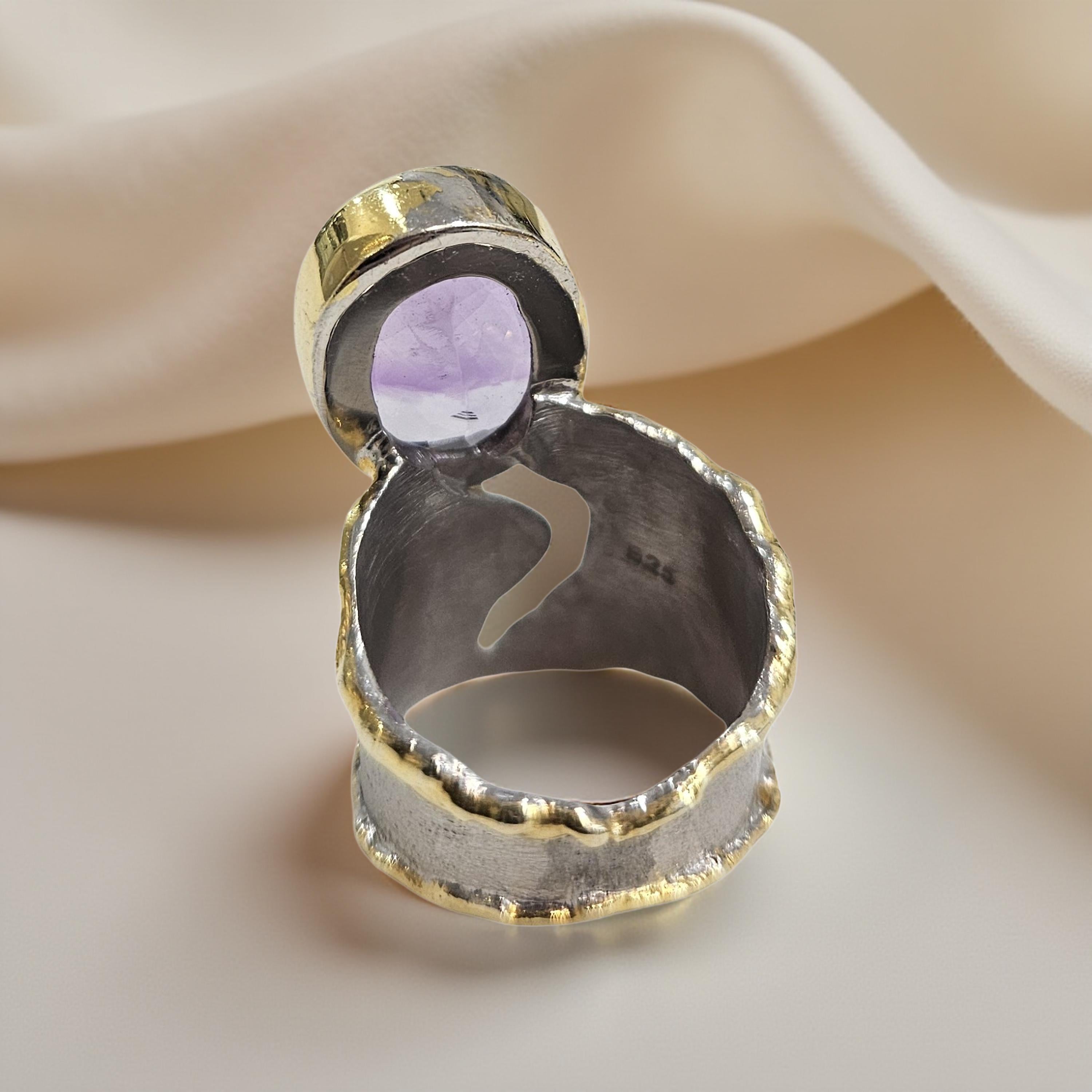 Bague en argent 925 et plaqué or, pierres améthyste et zirconium