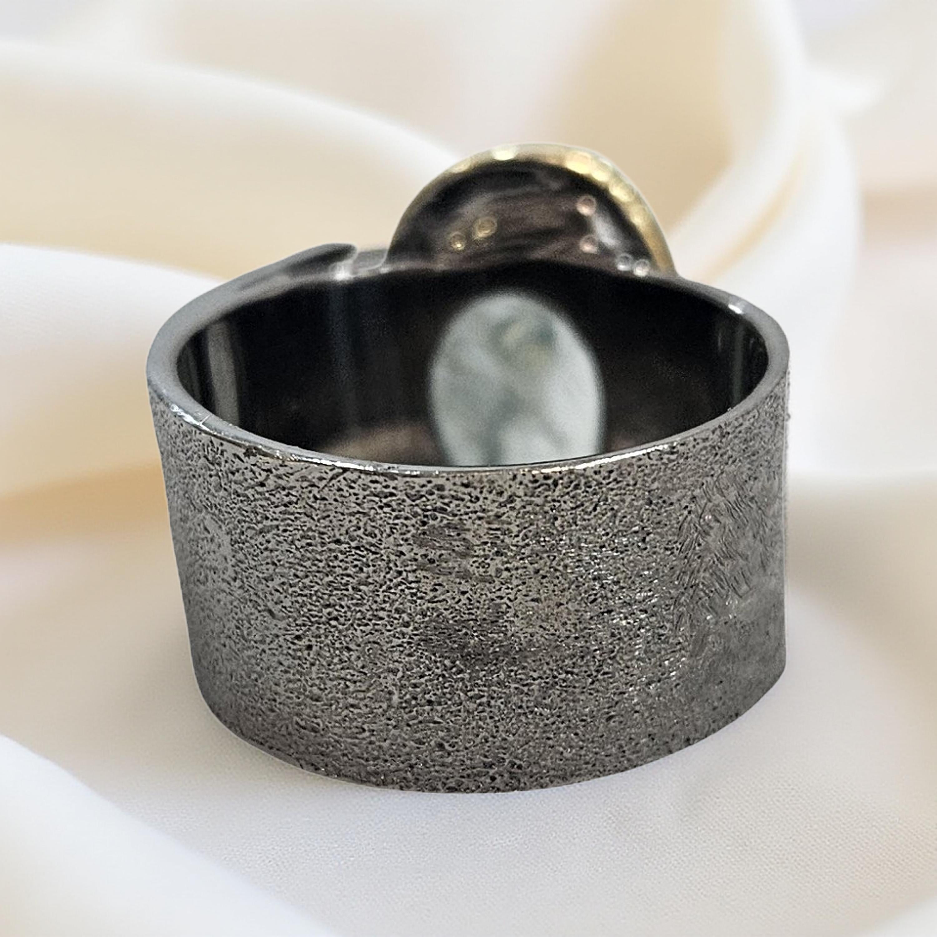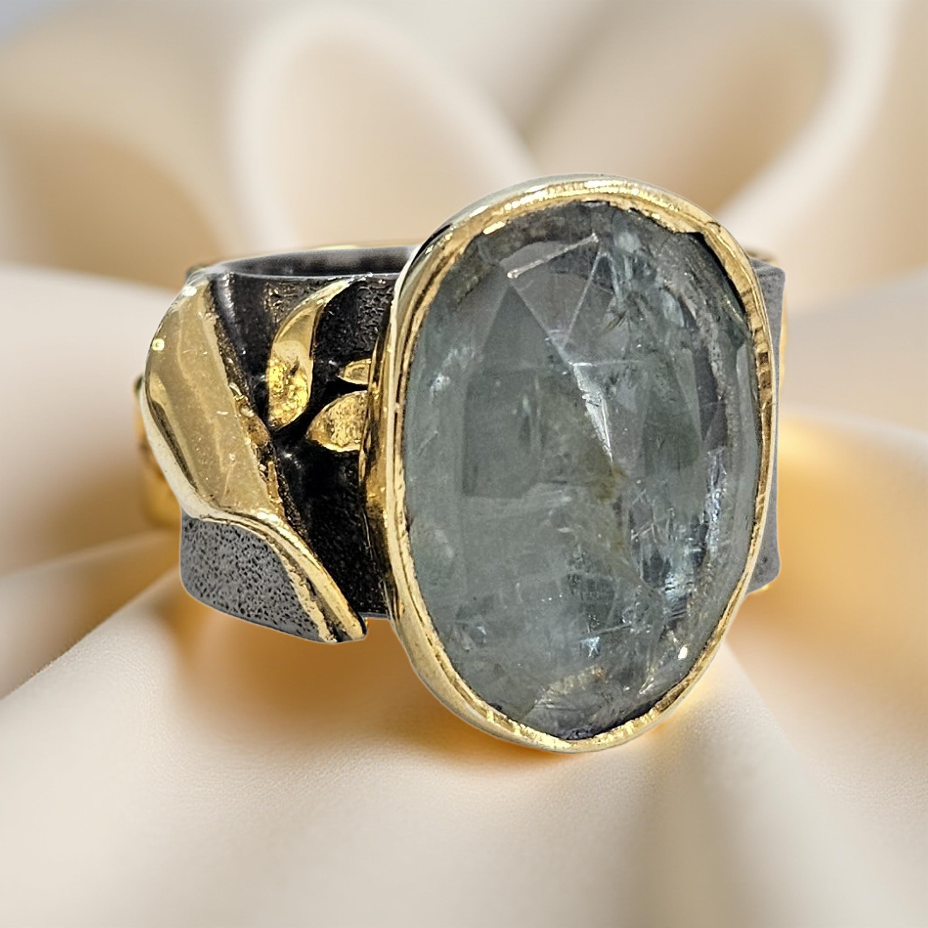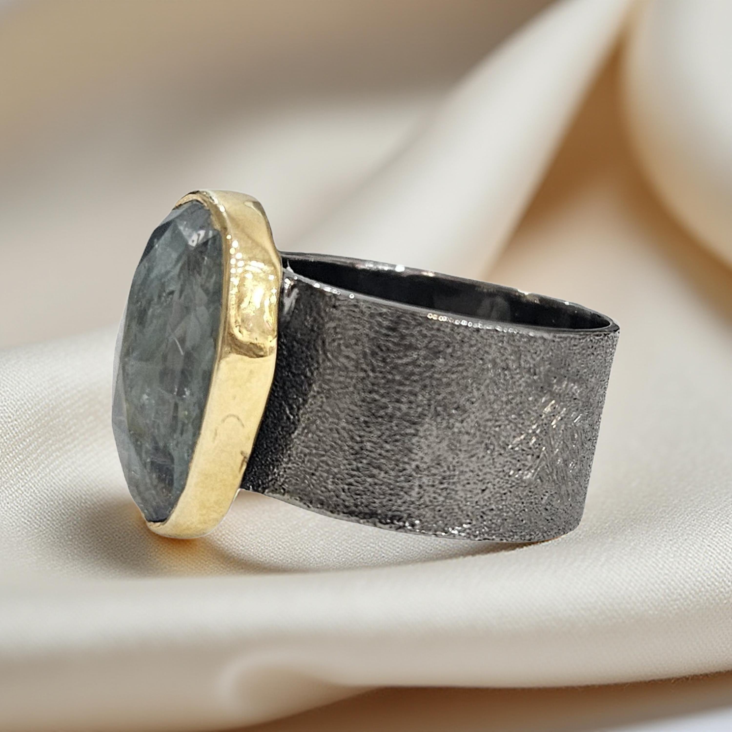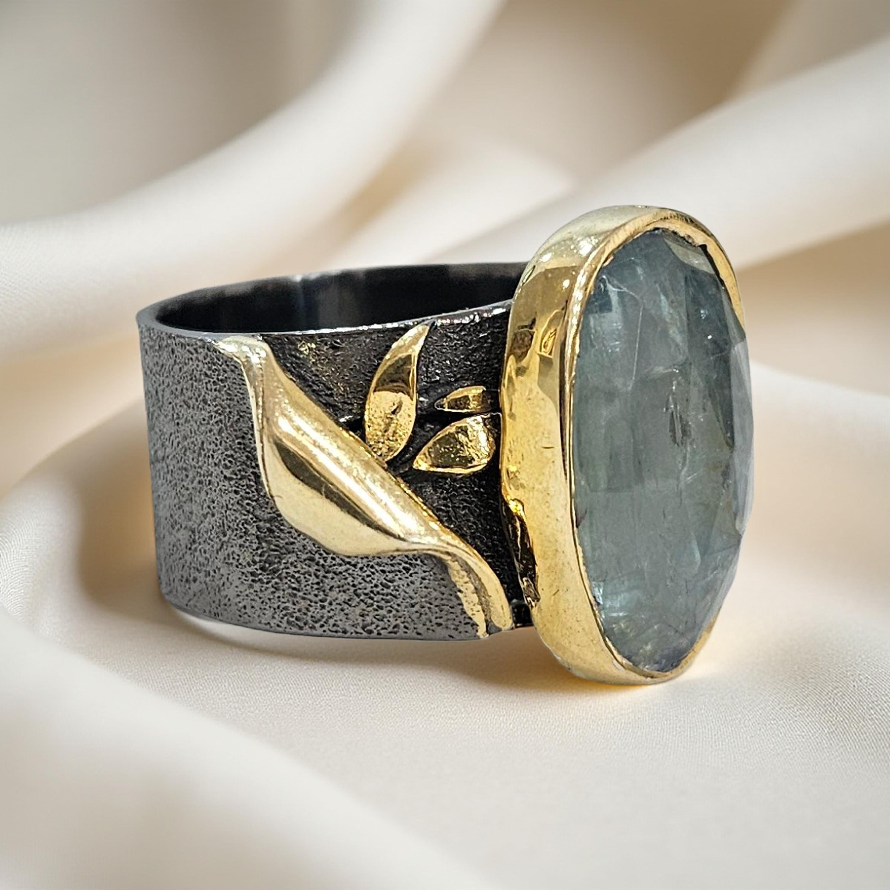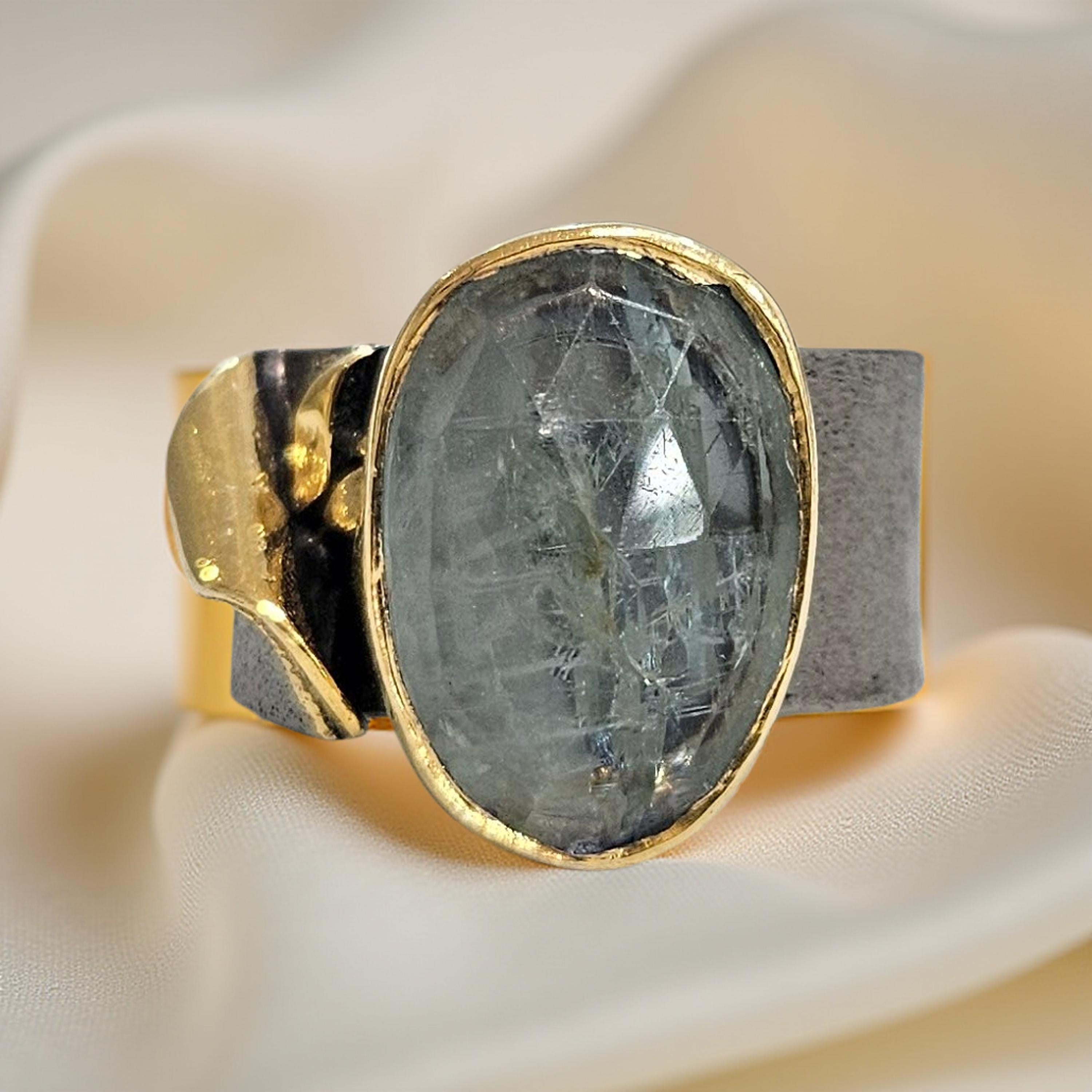 Bague en argent 925 rhodié et plaqué or, pierre cyanite