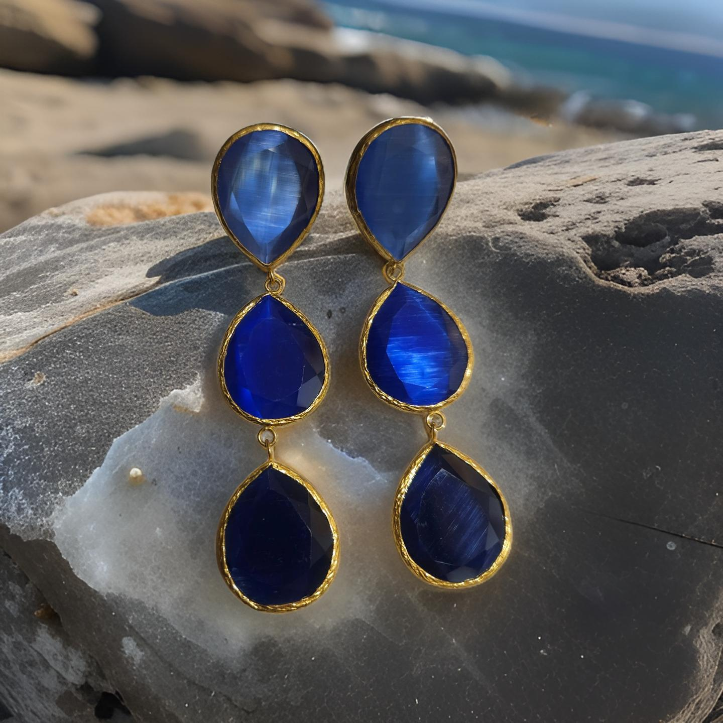 Boucles d'oreilles pendantes, gouttes, 3 pierres