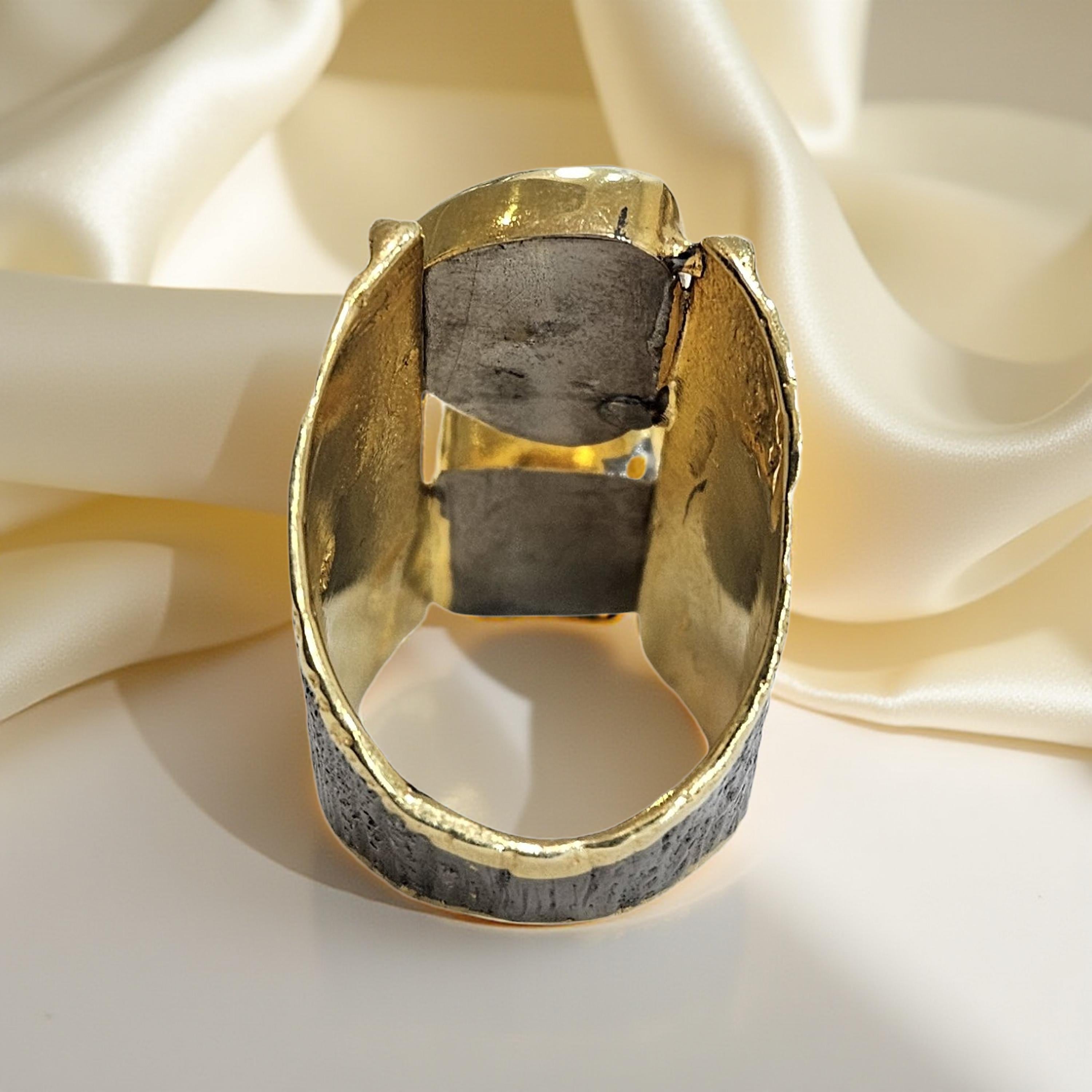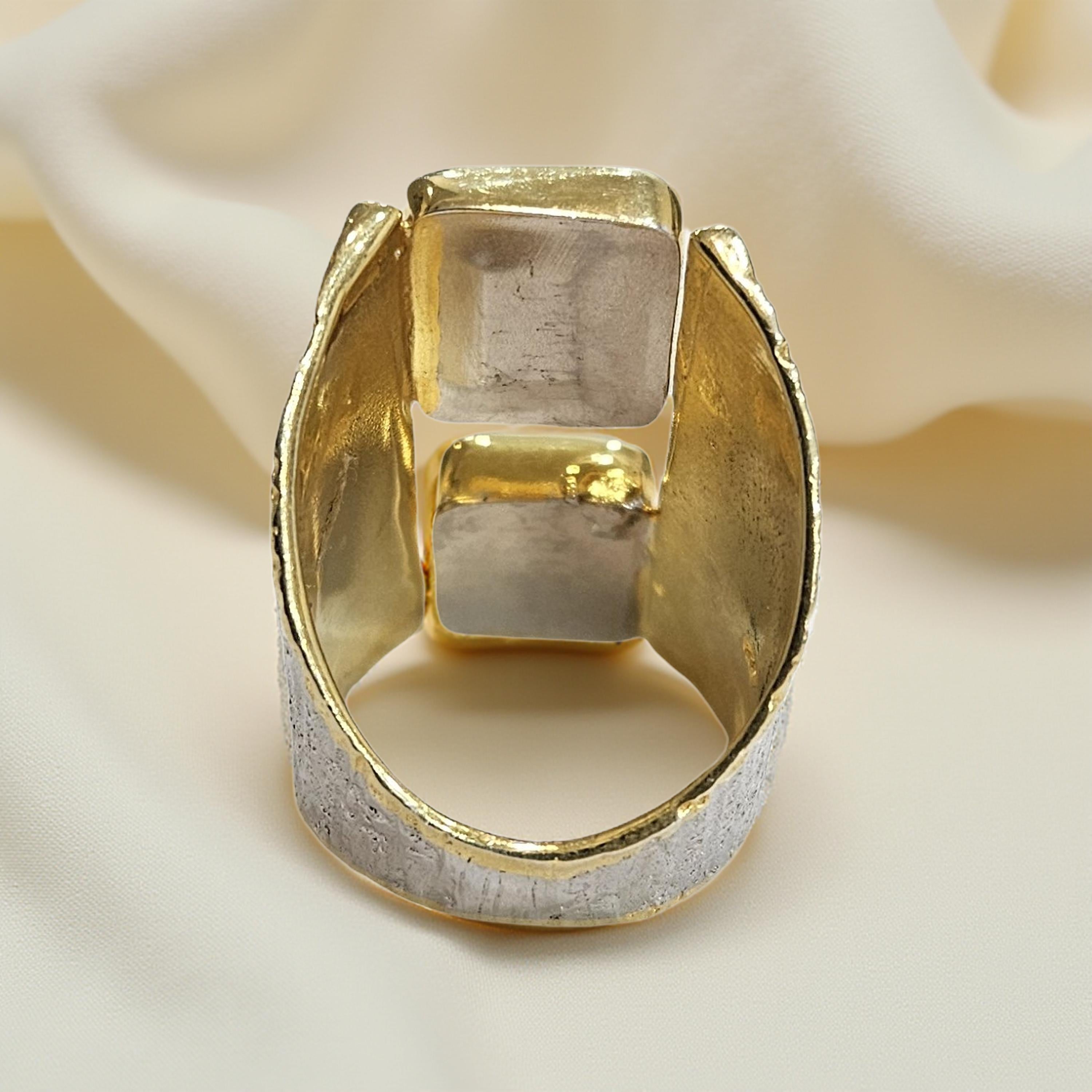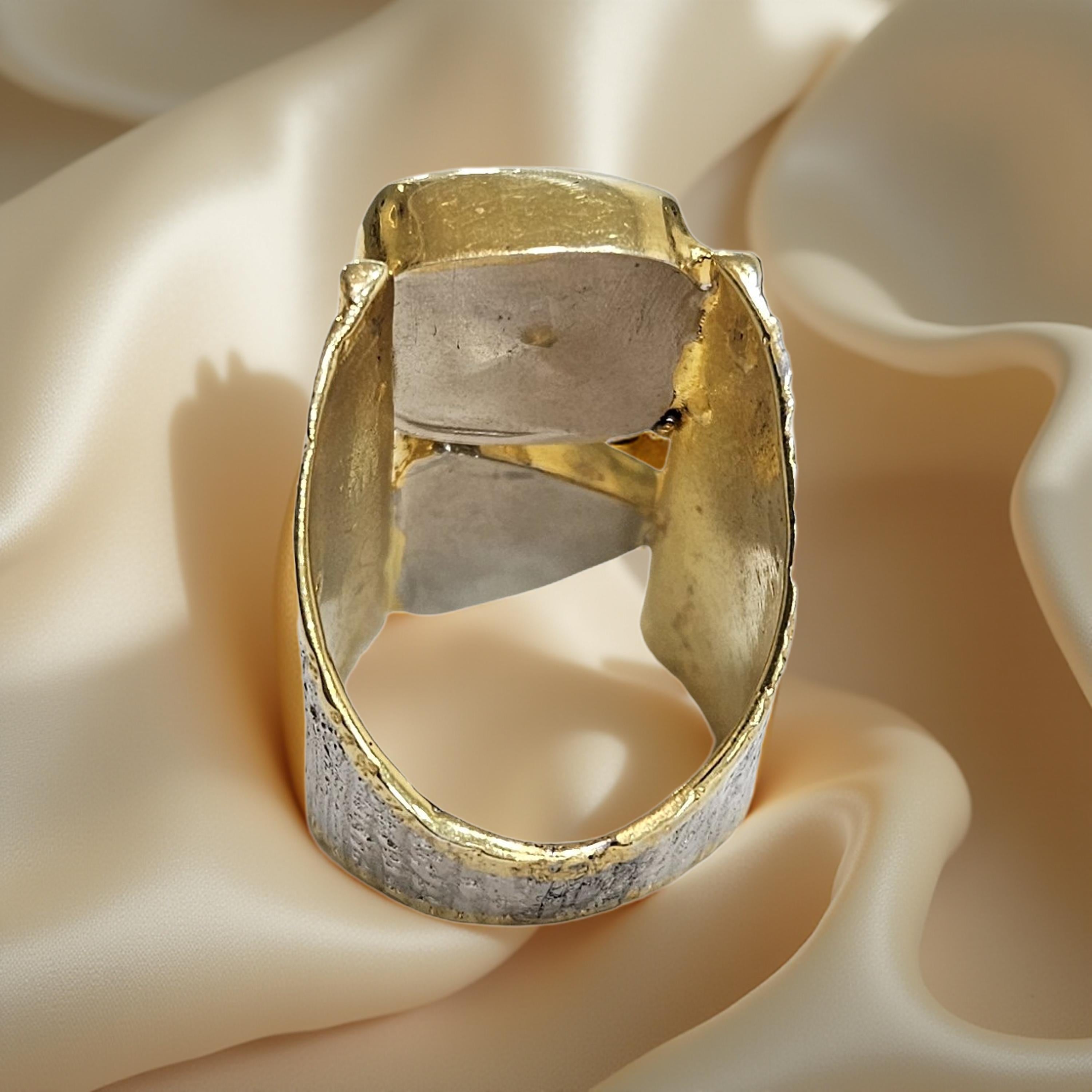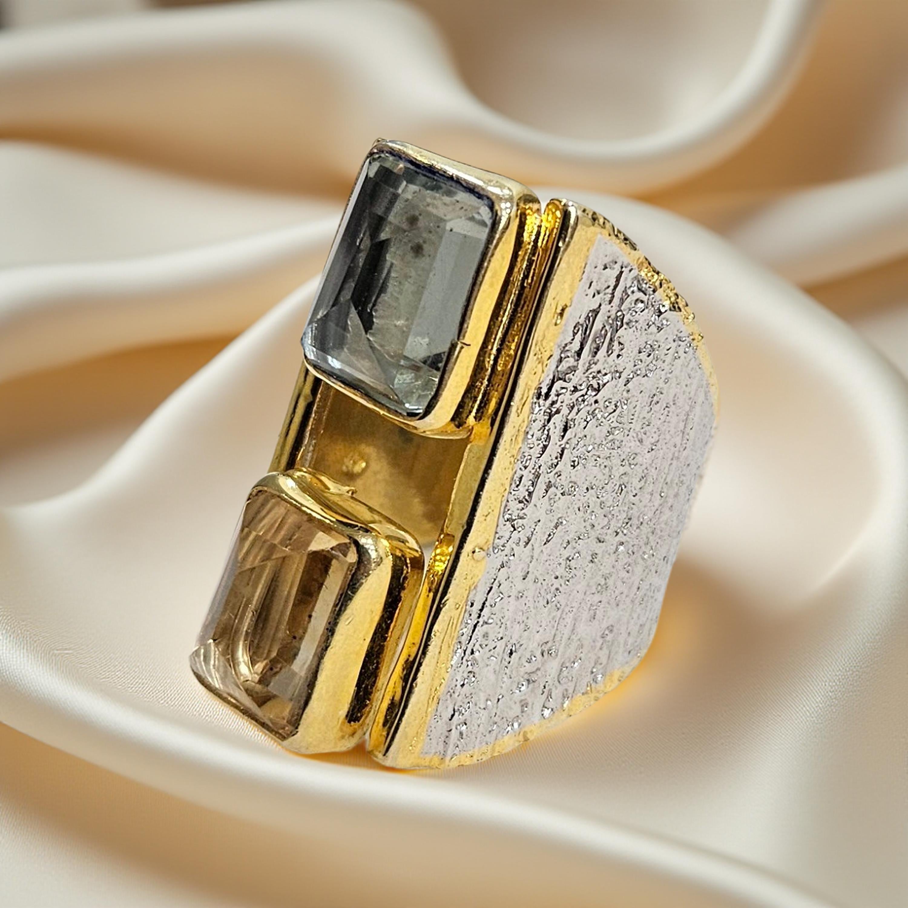 Bague en argent 925 rhodié et plaqué or, multi-pierres semi-précieuses