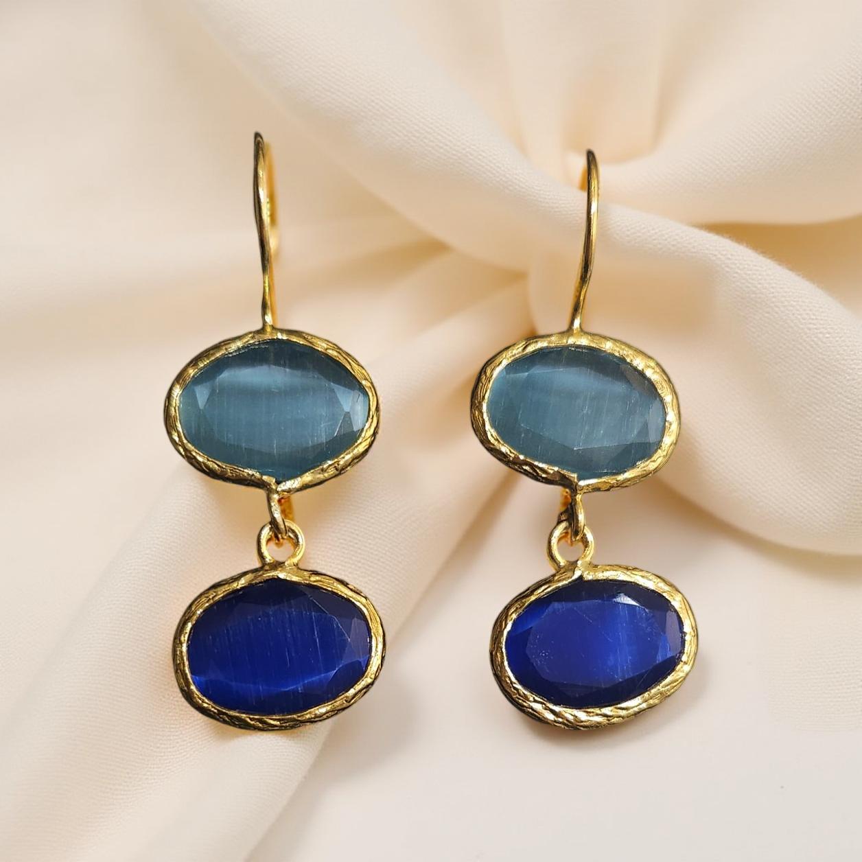 Boucles d'oreilles pendantes, 2 pierres