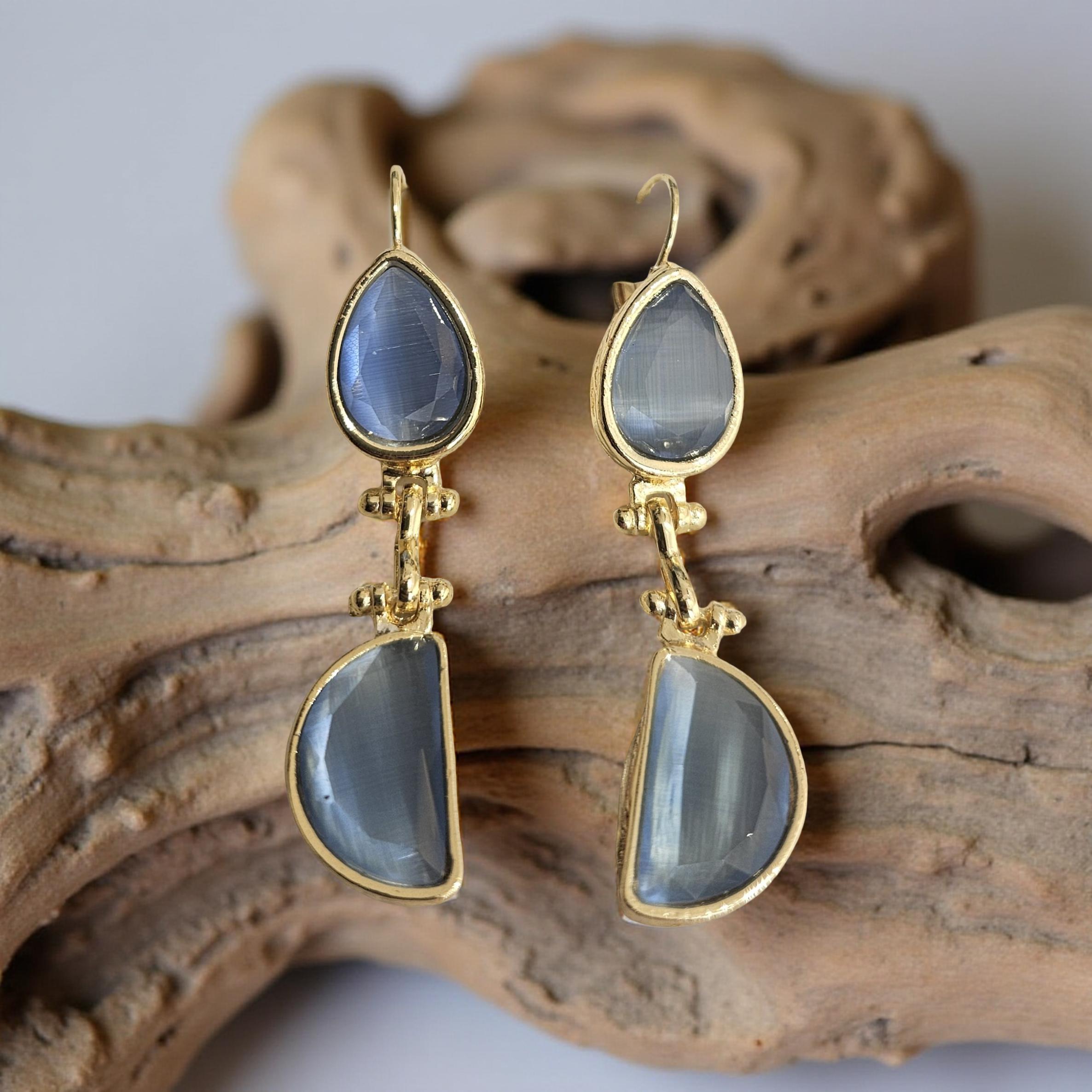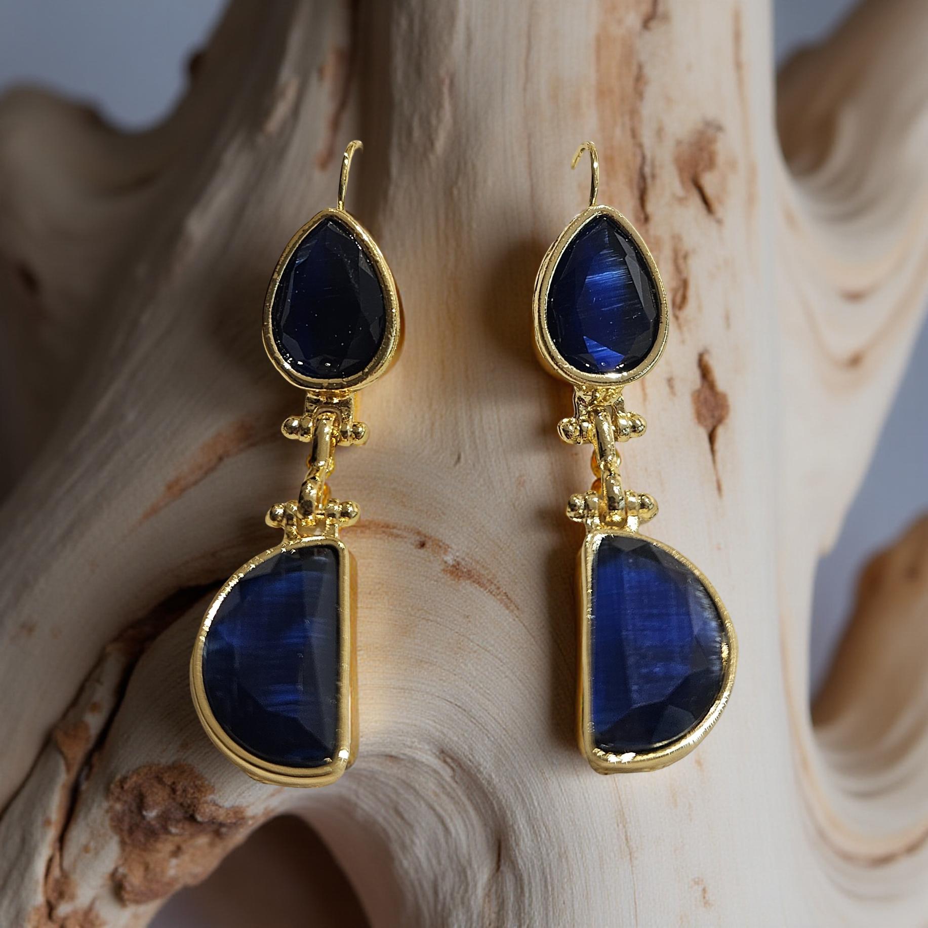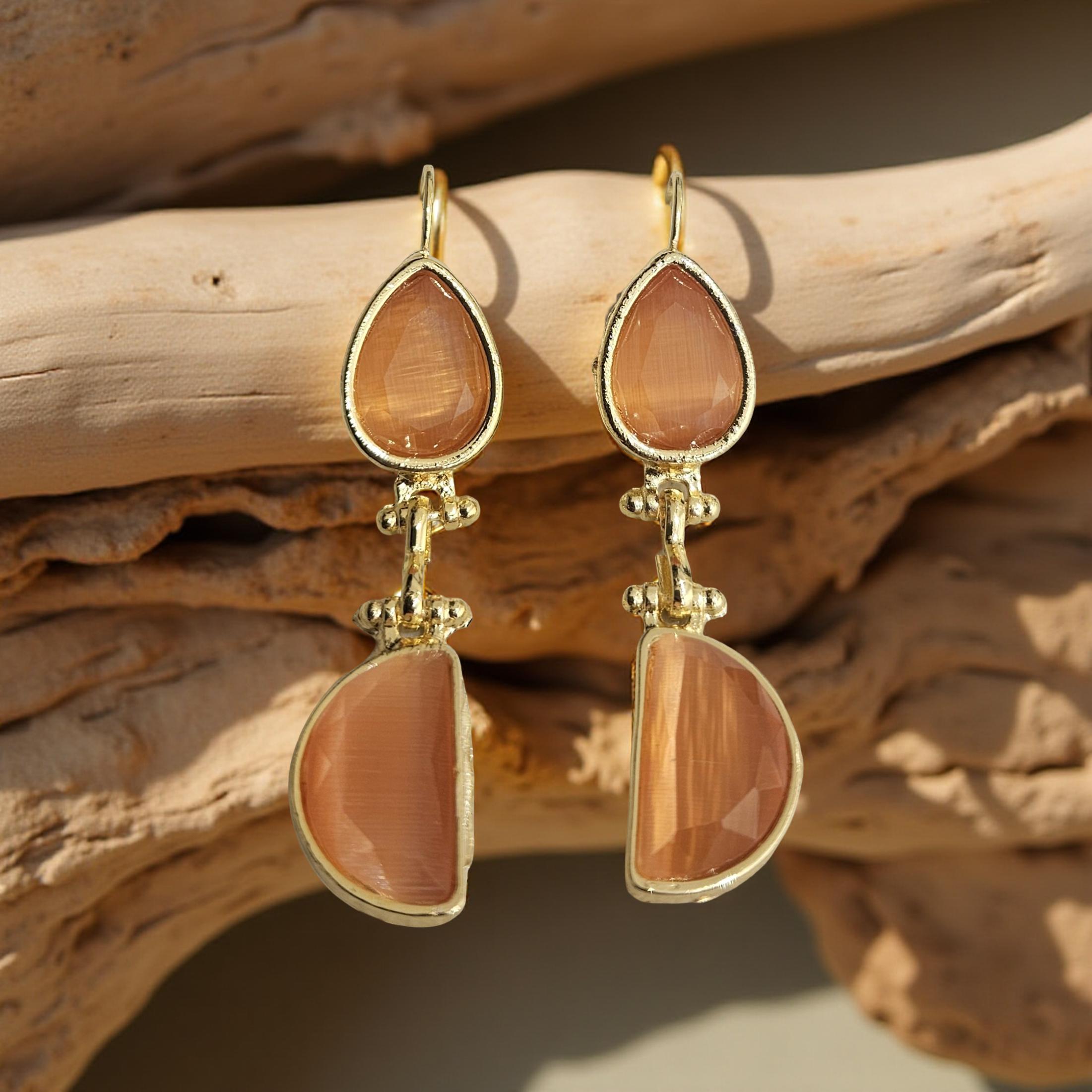 Profitez d'un style unique avec nos Boucles d'oreilles œil de chat. Les pierres en forme de goutte et demi-lune en laiton plaqué or sont disponibles en divers coloris pour compléter votre tenue. Ajoutez une touche d'élégance à votre look avec ces boucles d'oreilles tendance.