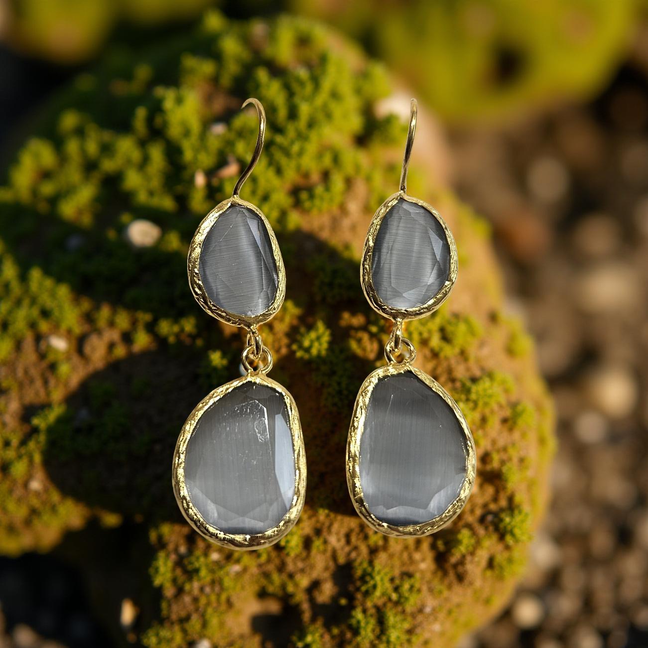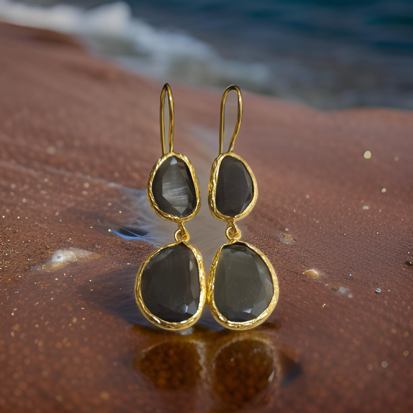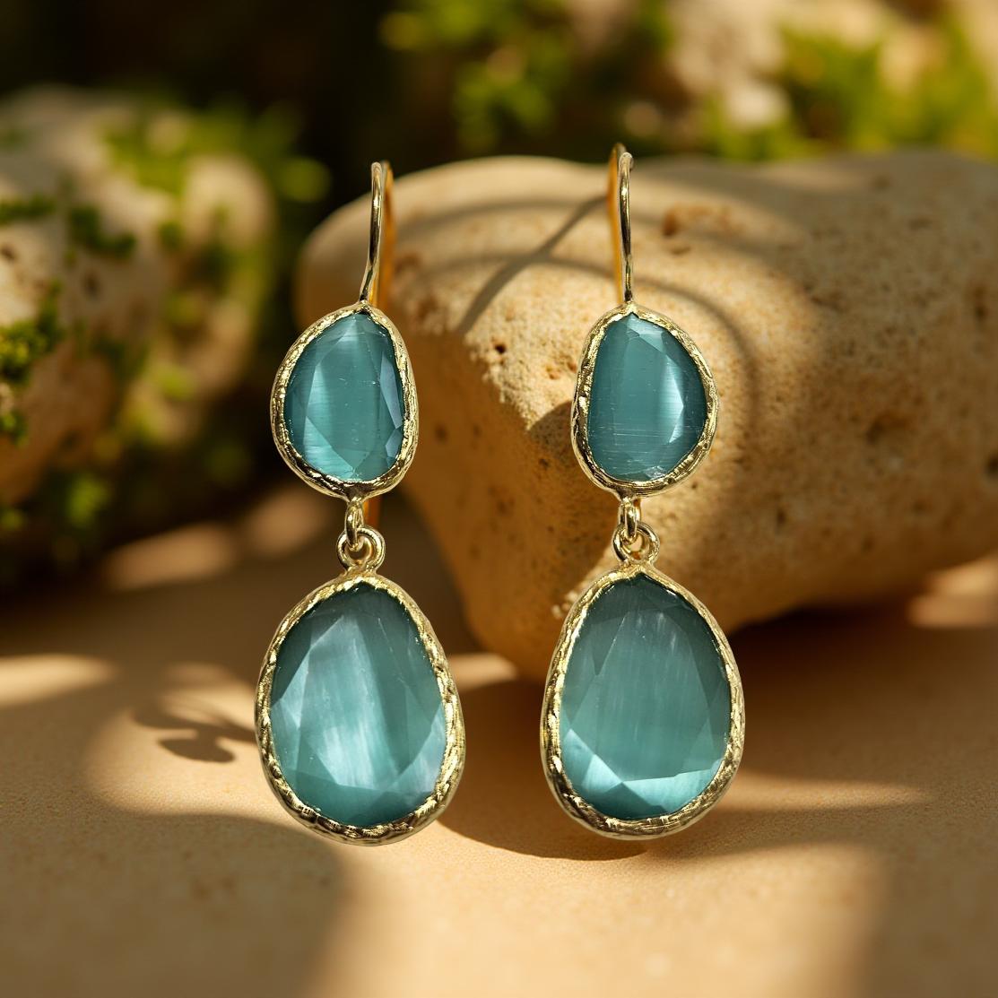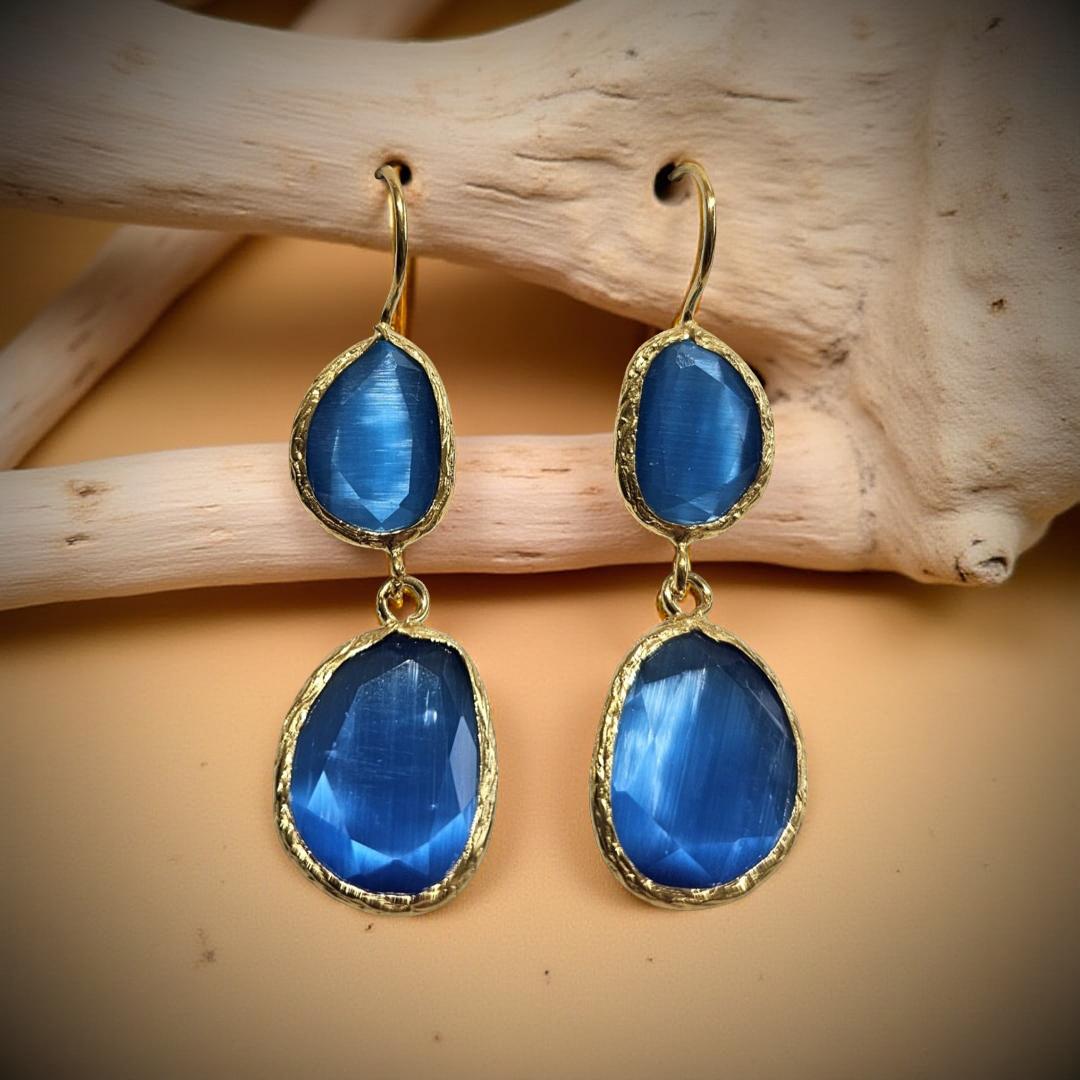 Boucles d'oreilles œil de chat, divers coloris (T.S)