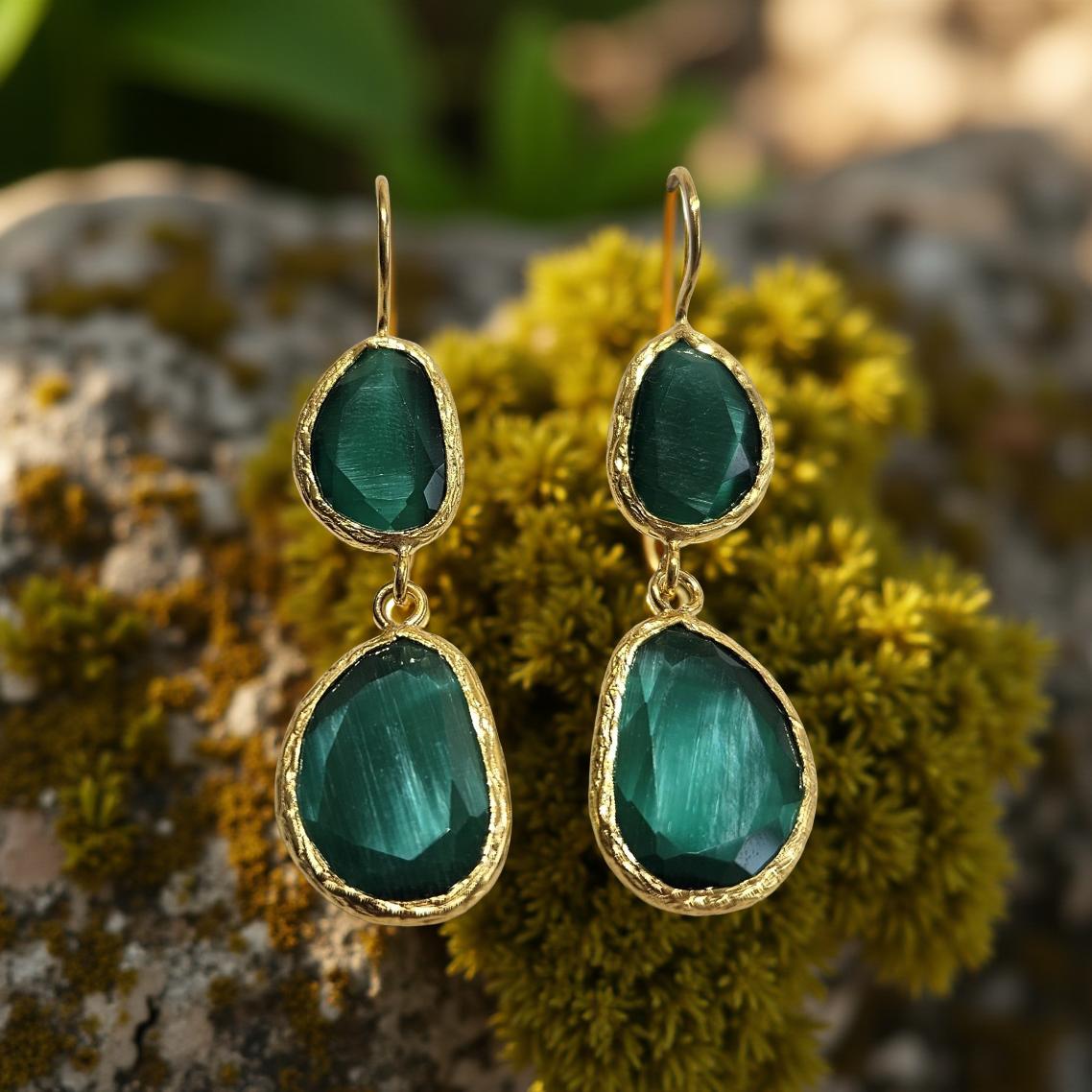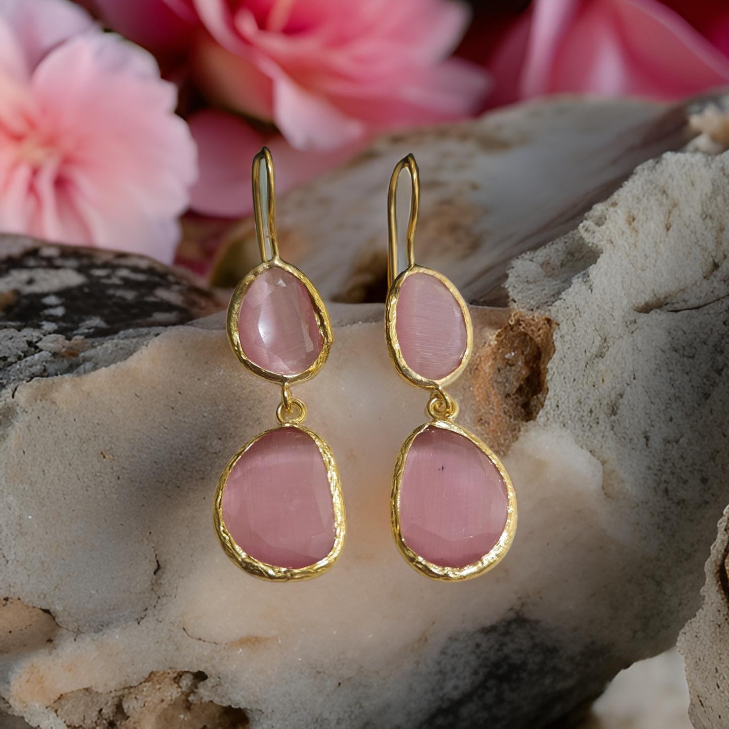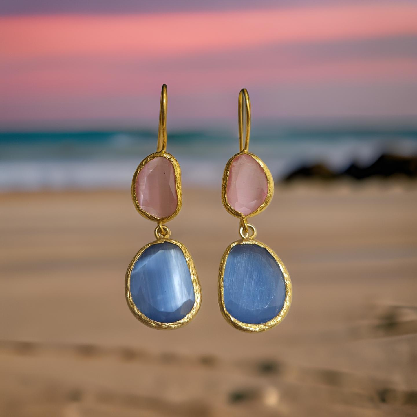 Boucles d'oreilles œil de chat, divers coloris (T.S)