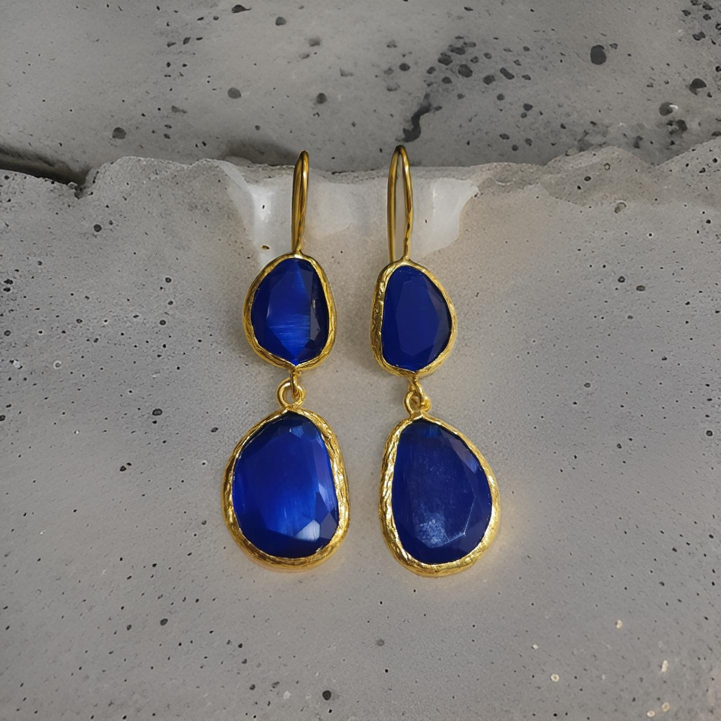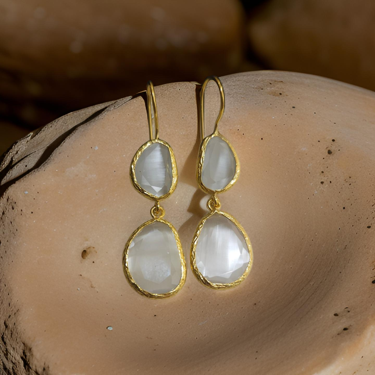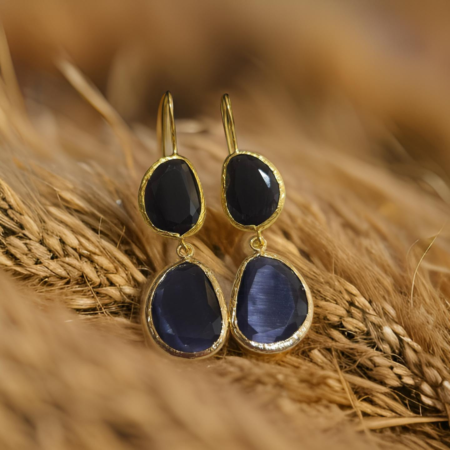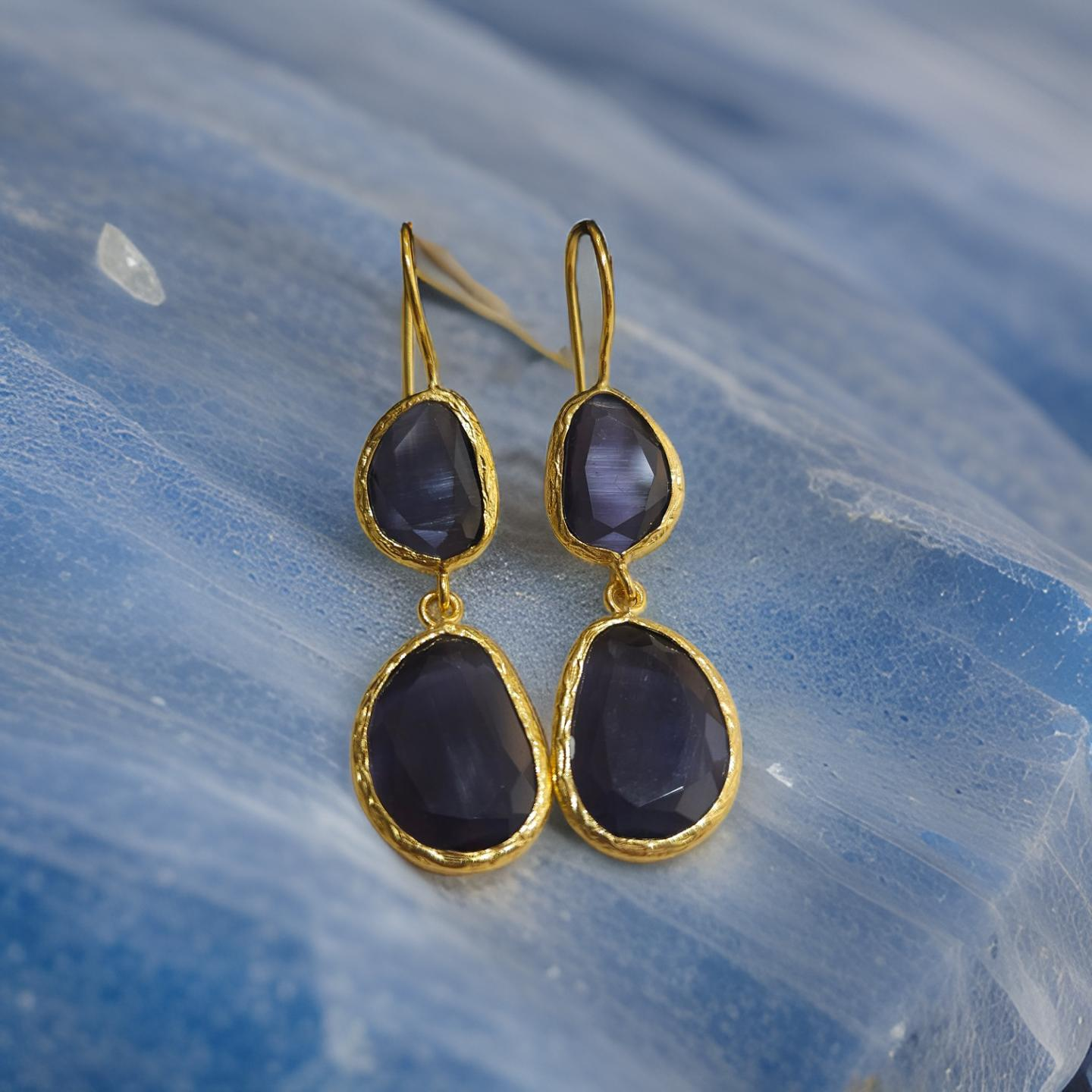 Boucles d'oreilles pendantes, 2 pierres