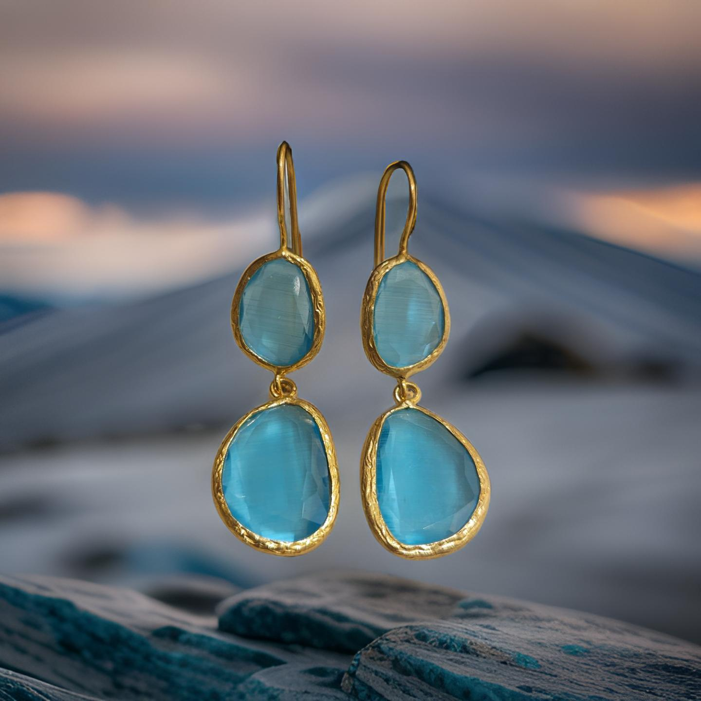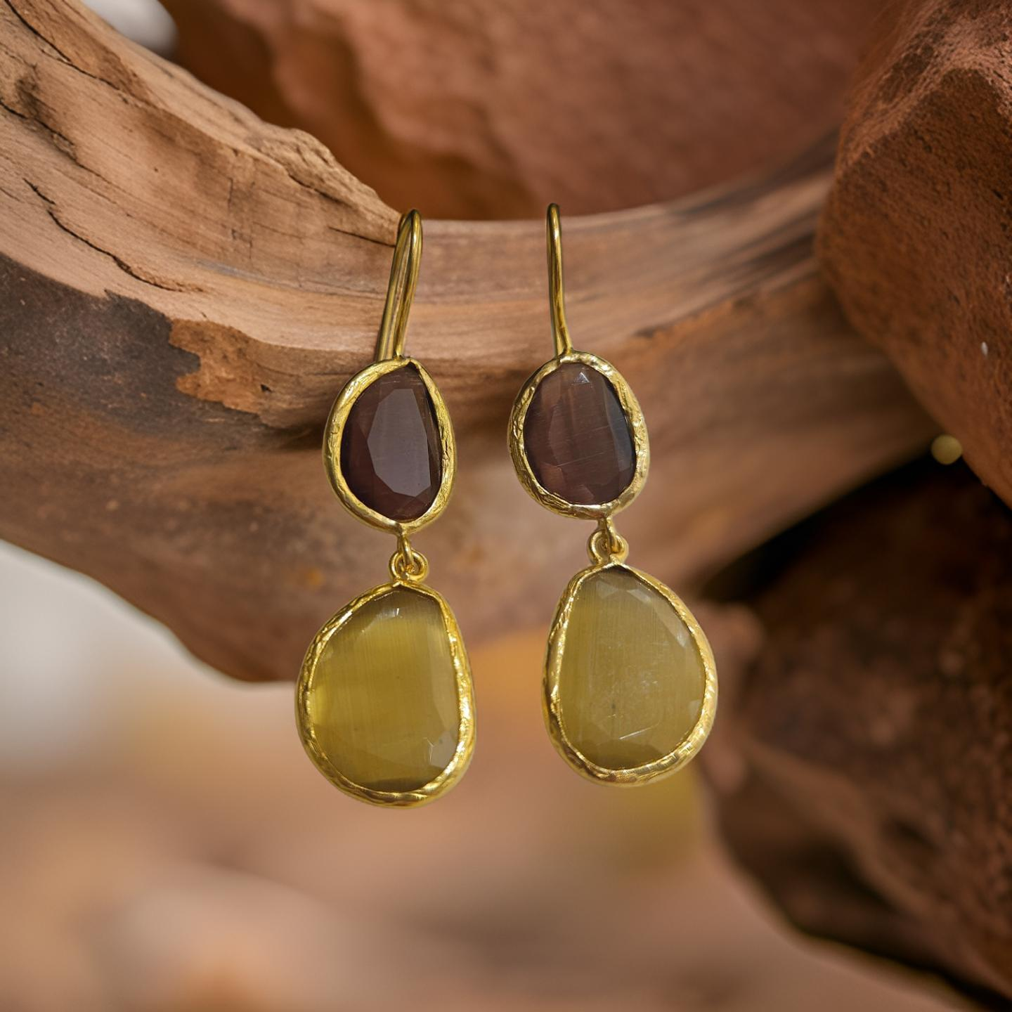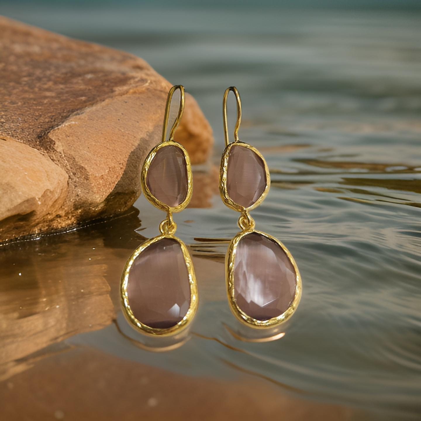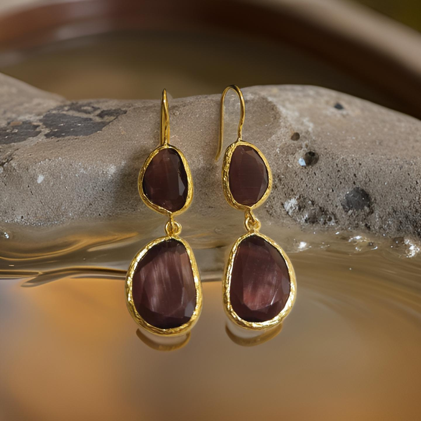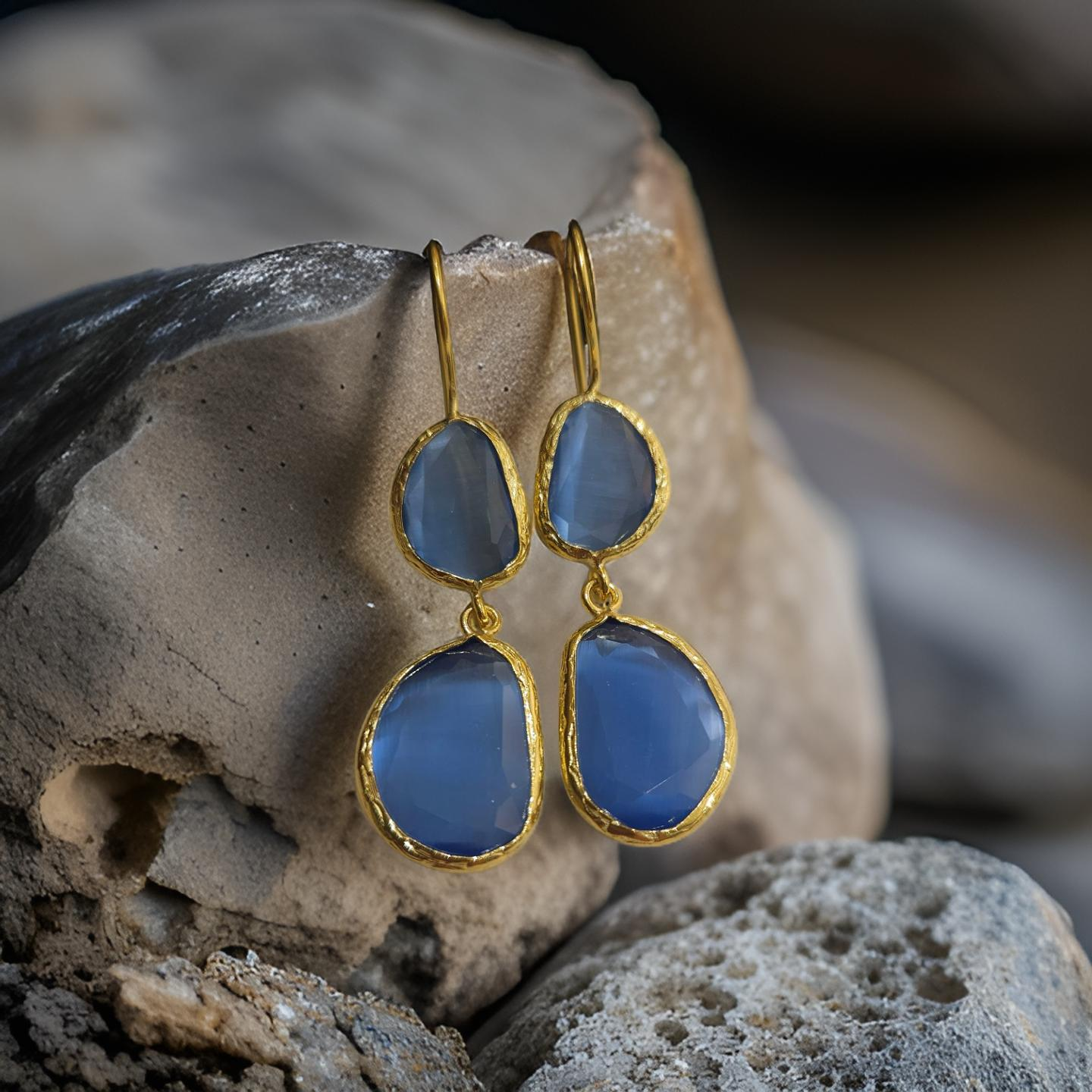 Boucles d'oreilles pendantes, 2 pierres