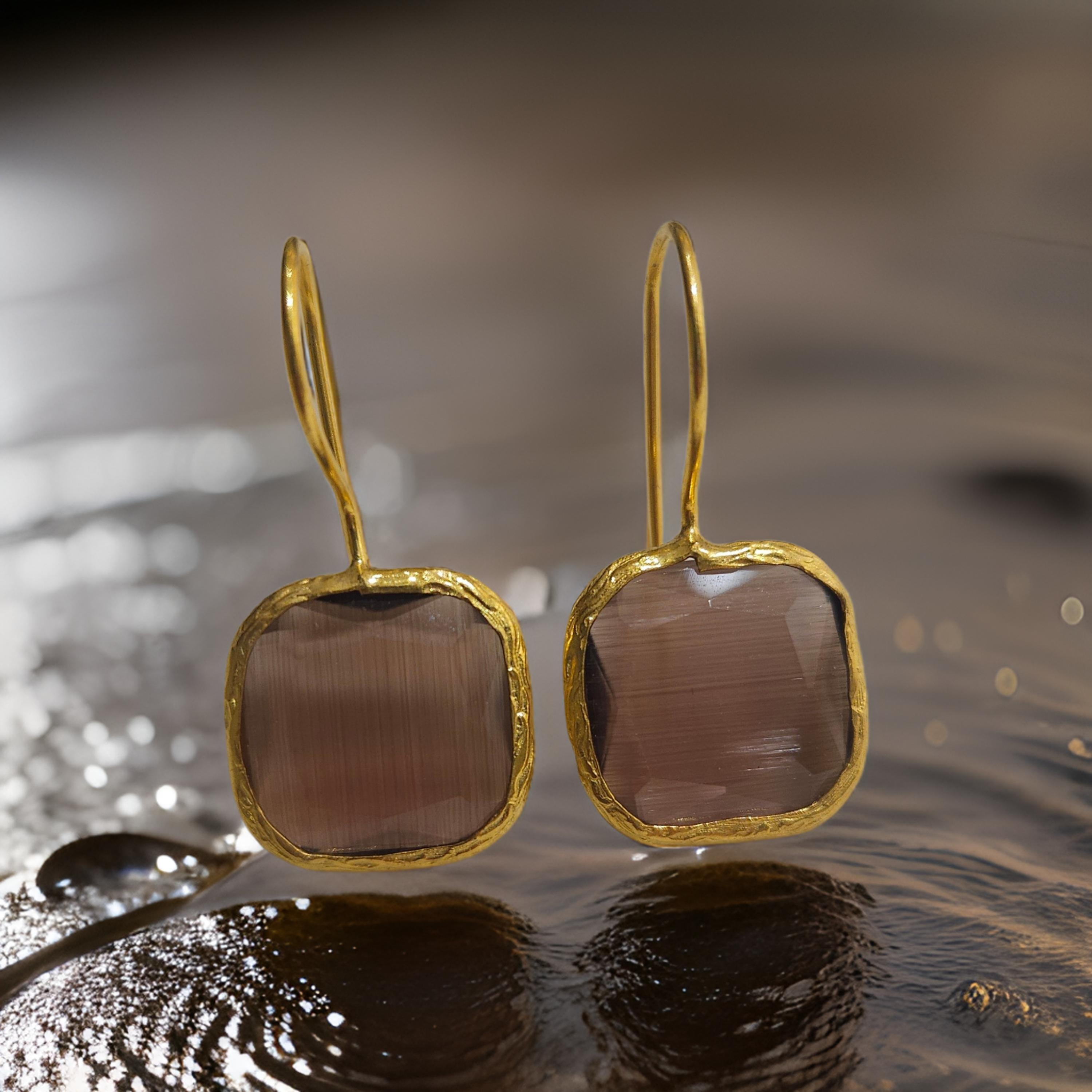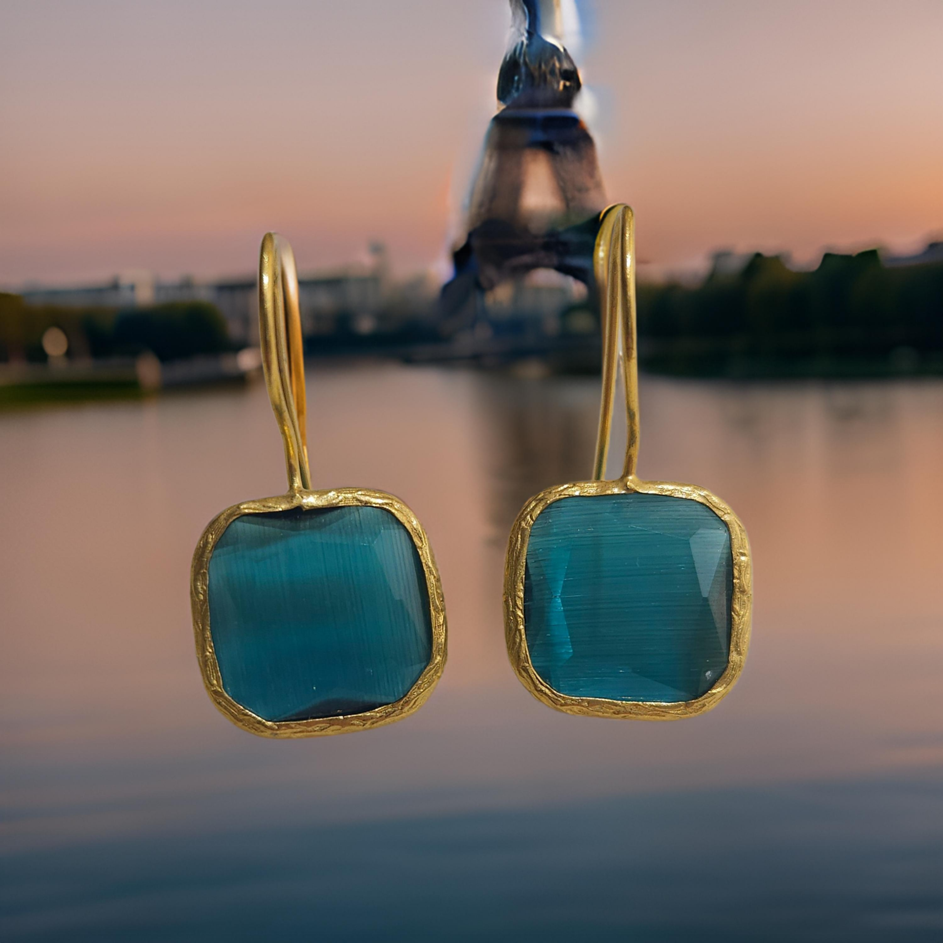Ces boucles d'oreilles œil de chat donneront une touche de sophistication à toutes vos tenues avec leur design carré, élégant et raffiné. Disponibles en plusieurs coloris. Soyez prête à faire tourner les têtes avec ces boucles d'oreilles chics et tendance. Chaque pierre étant unique, vous avez l'assurance d'un bijou exclusif.