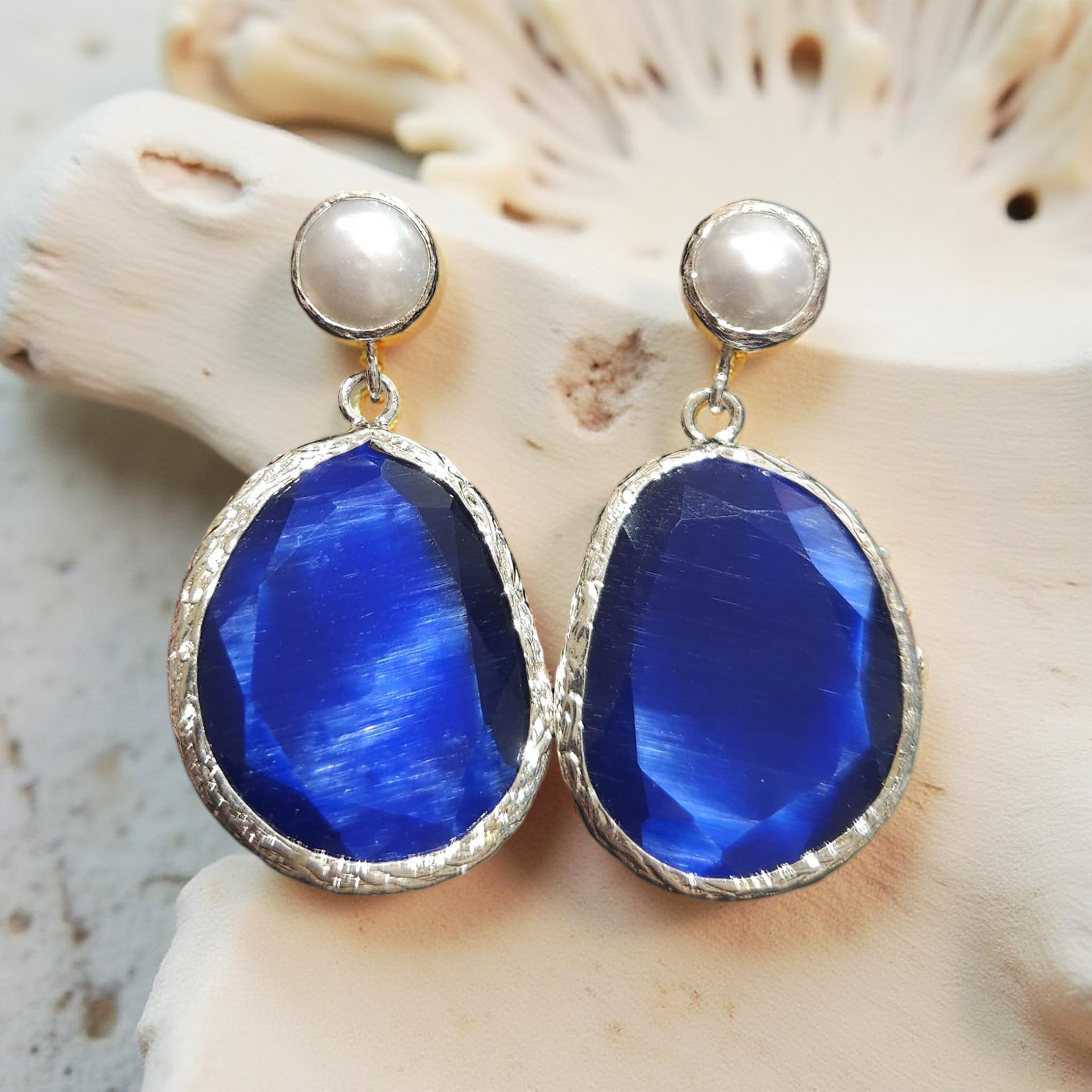 Boucles d'oreilles œil de chat, perles. Divers coloris.