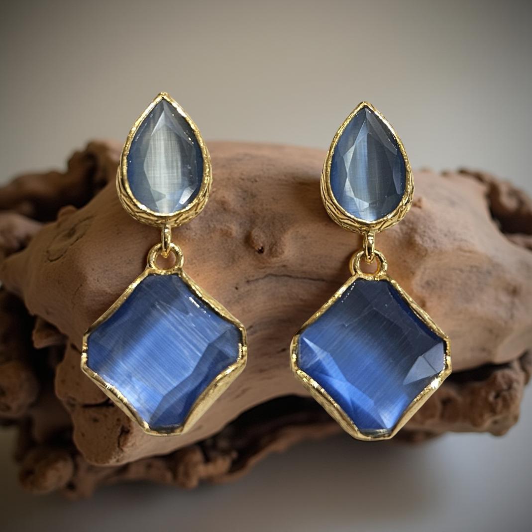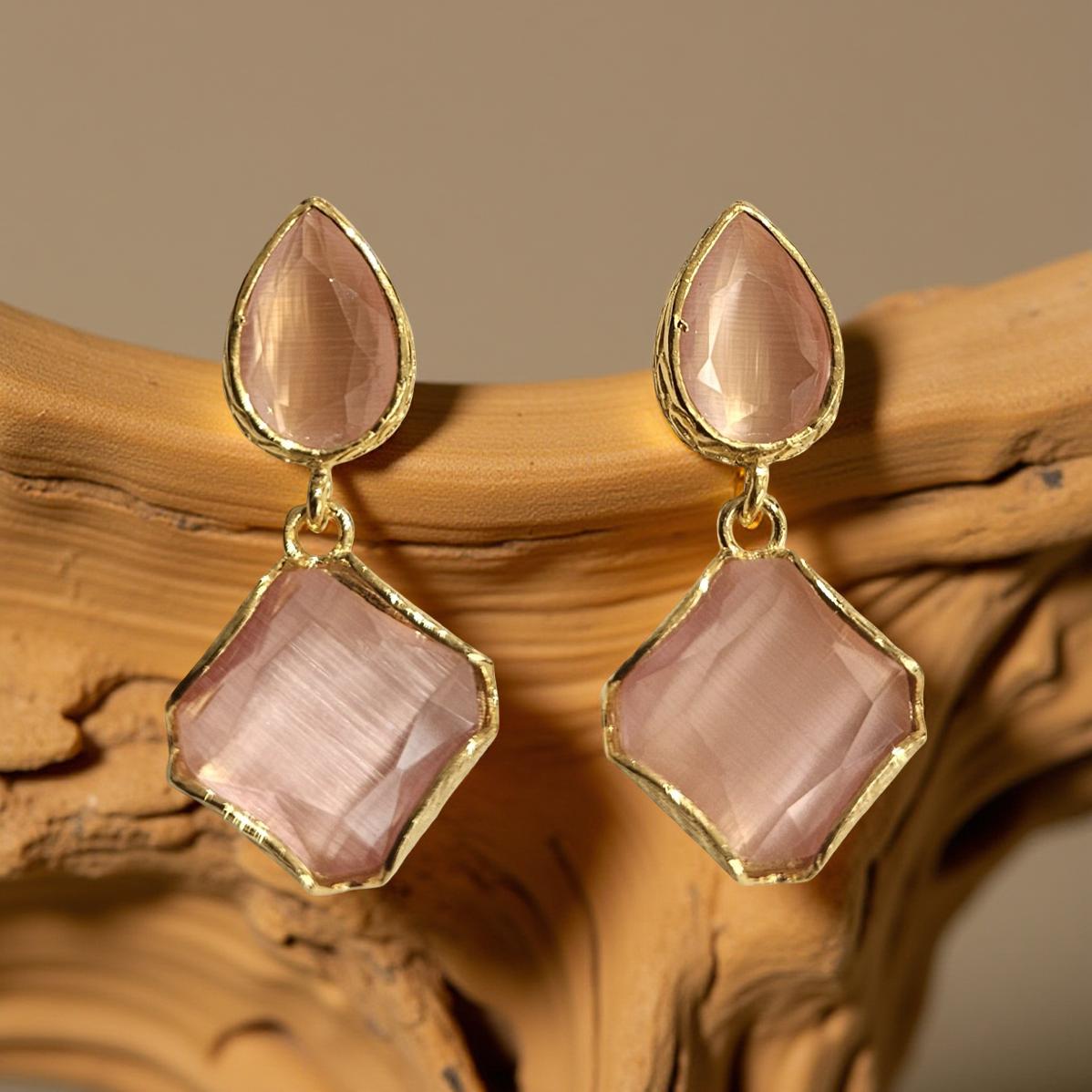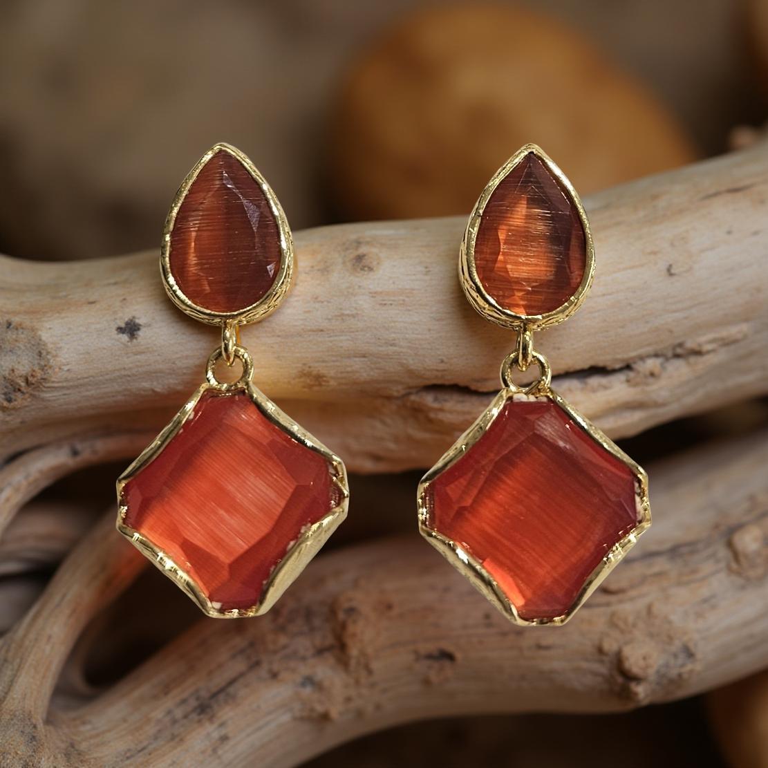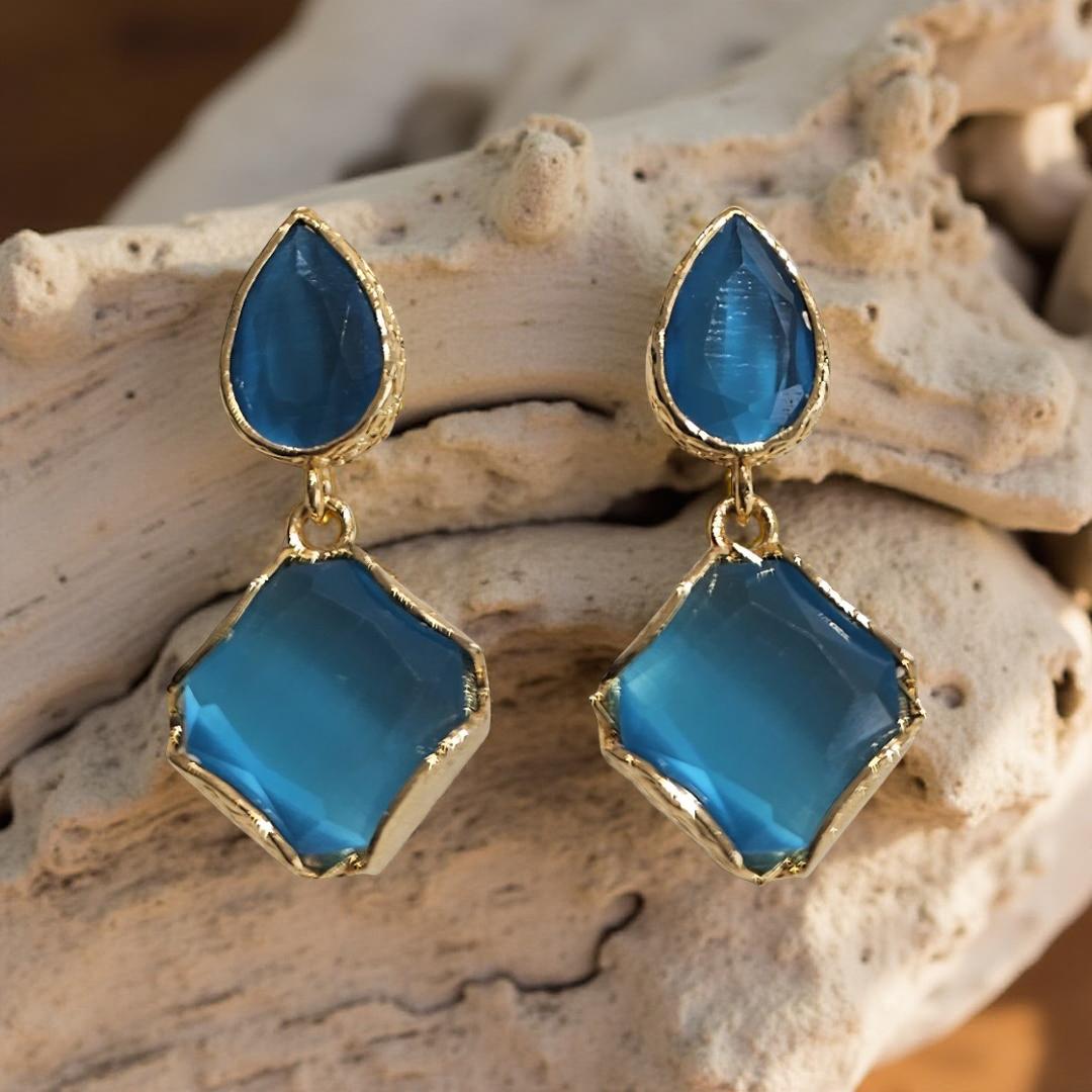 Découvrez nos magnifiques boucles d'oreilles en laiton plaqué or avec des pierres en oeil de chat. La forme goutte et losange ajoute de l'élégance à ces bijoux disponibles dans différentes couleurs. Ajoutez une touche de classe à votre tenue avec ces boucles d'oreilles uniques.