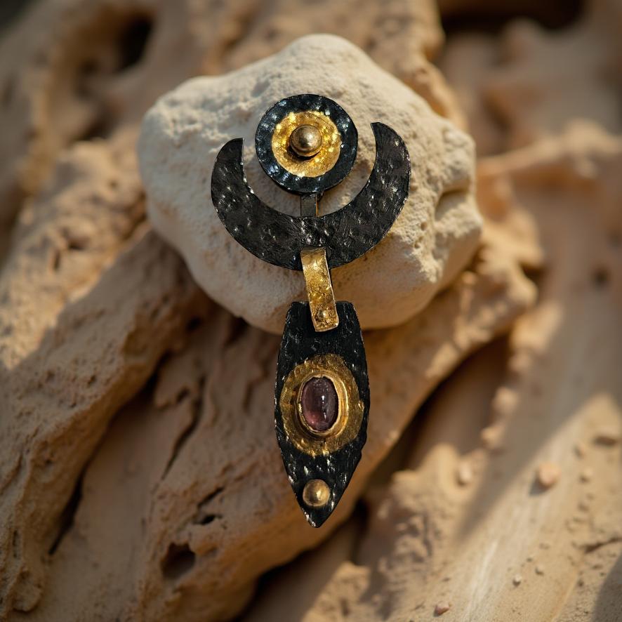 Cette boucle d'oreille en argent 925 rhodié et plaqué or est faite à la main avec un design unique. Ornée d'une pierre tourmaline, elle ajoute une touche sophistiquée à toute tenue. Profitez d'un style unique avec cette boucle d'oreille vendue à l'unité.