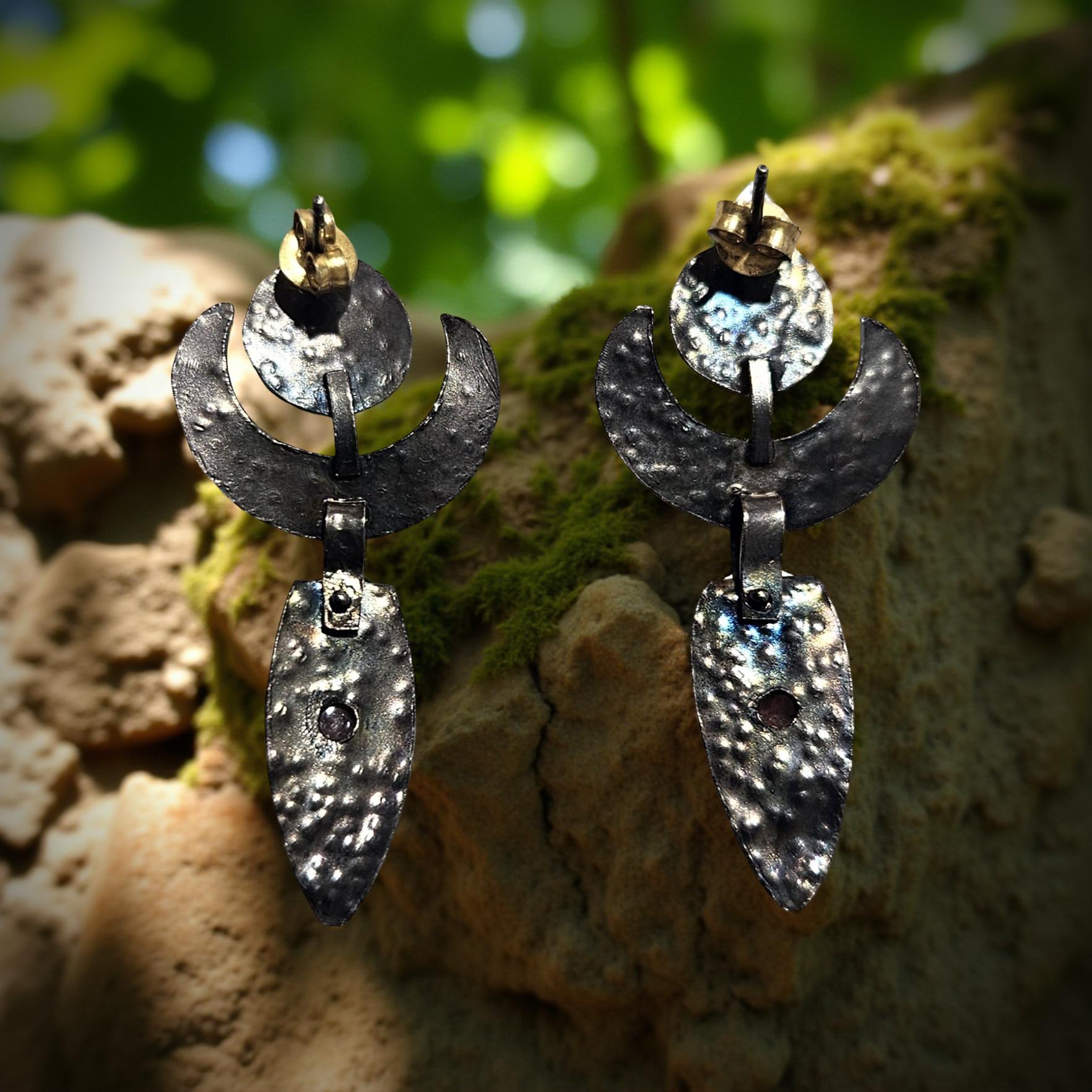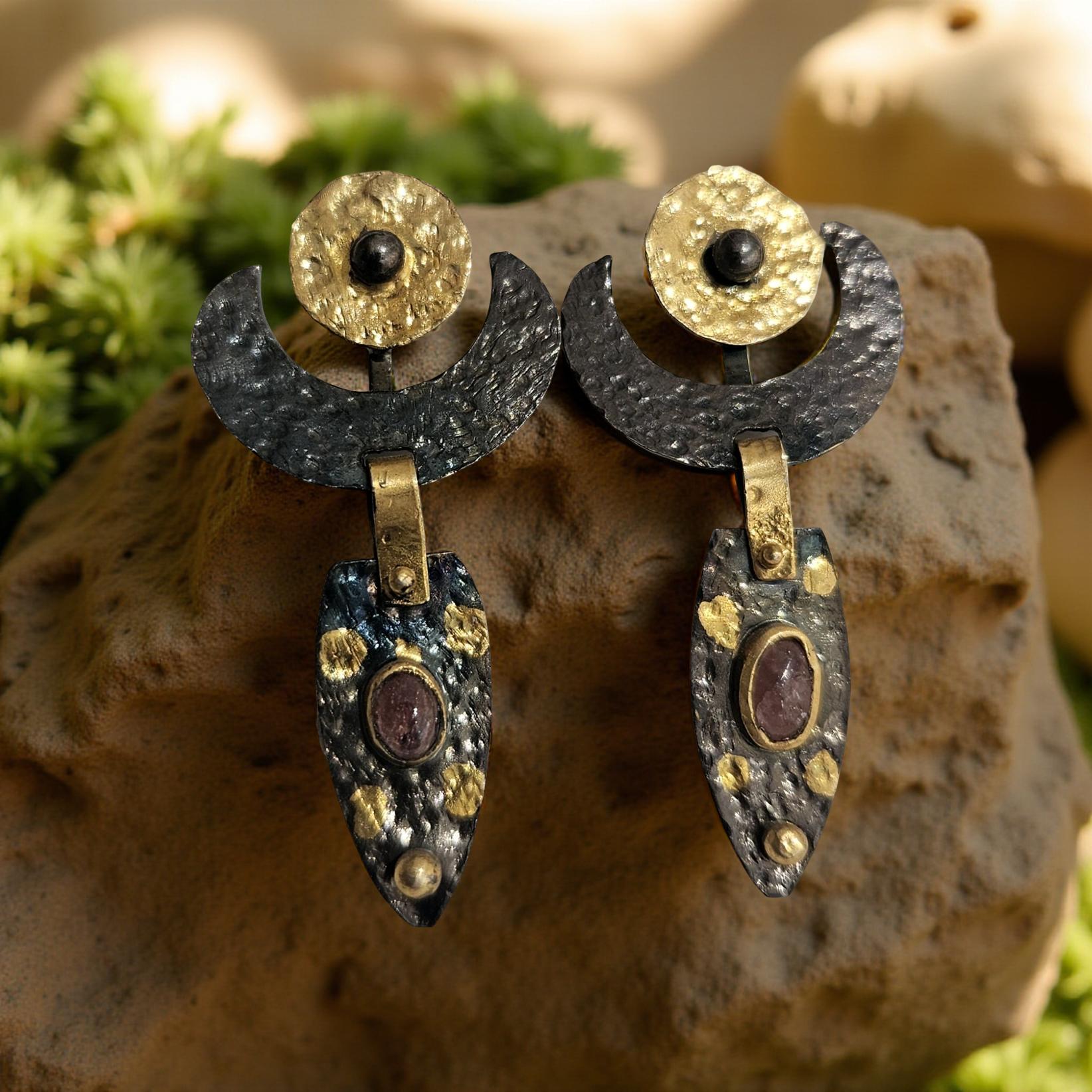 Boucles d'oreilles argent 925 rhodié, plaqué or et pierre tourmaline