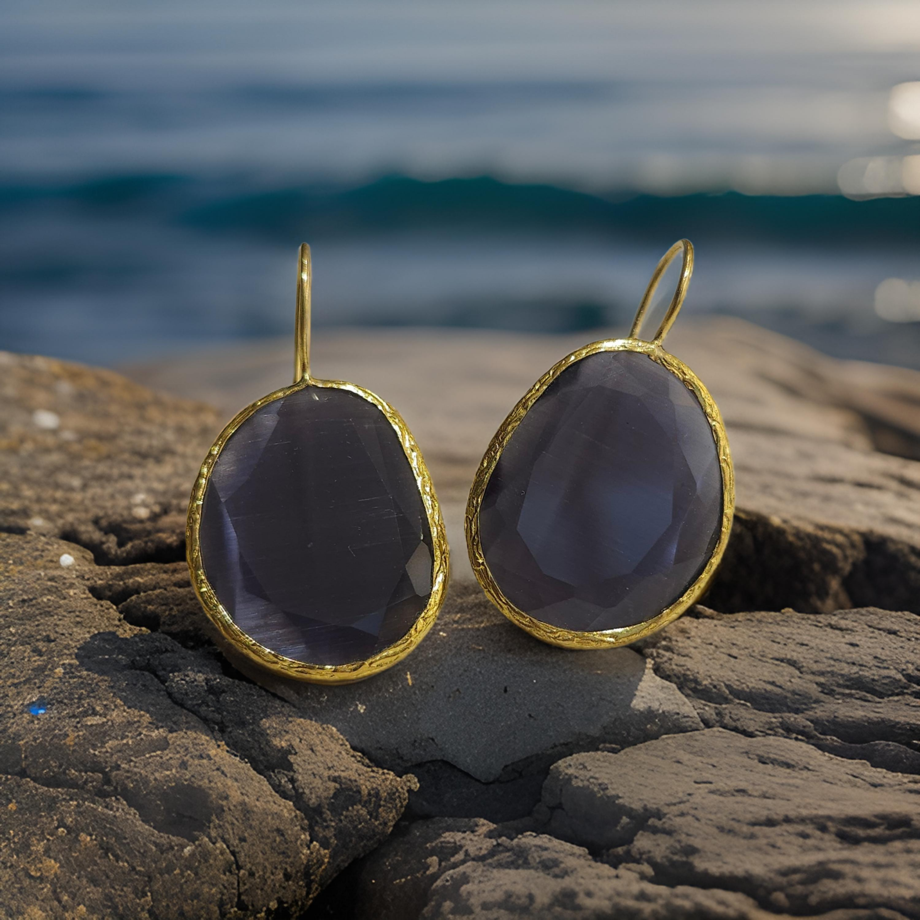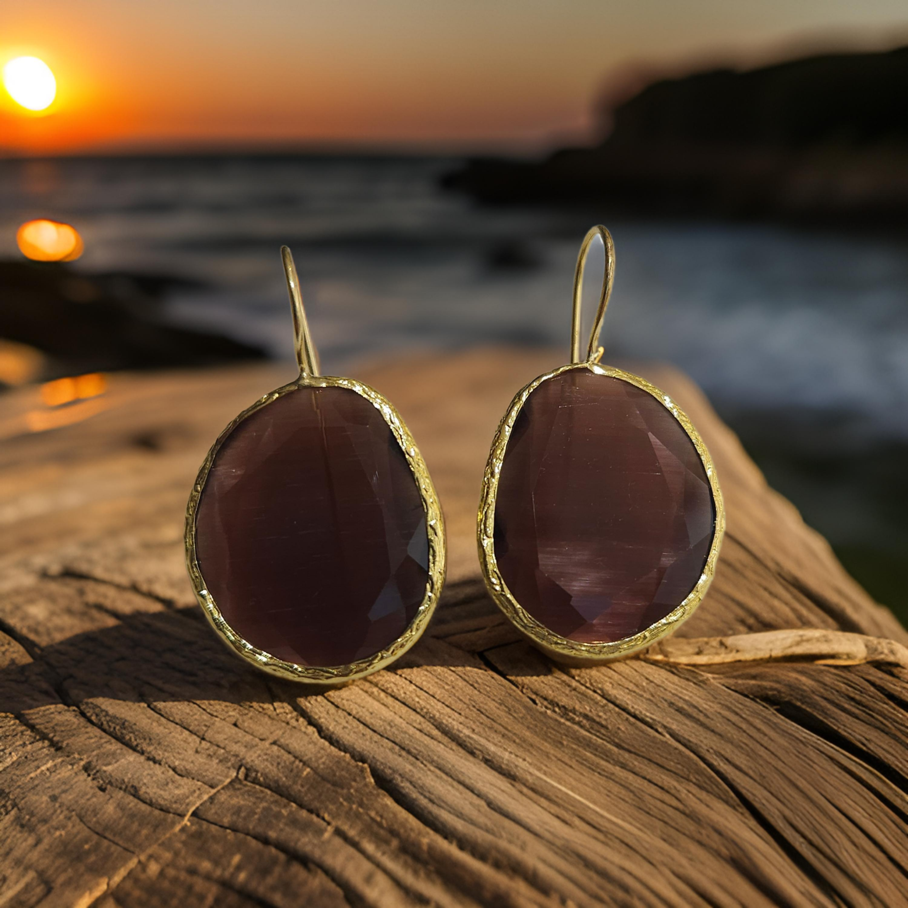 Boucles d'oreilles œil de chat, divers coloris (T.L)