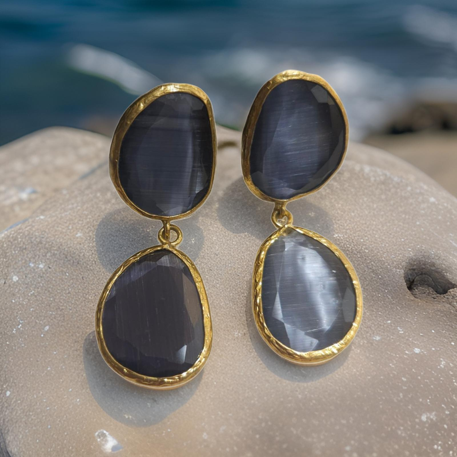 Boucles d'oreilles œil de chat, divers coloris (T.M)