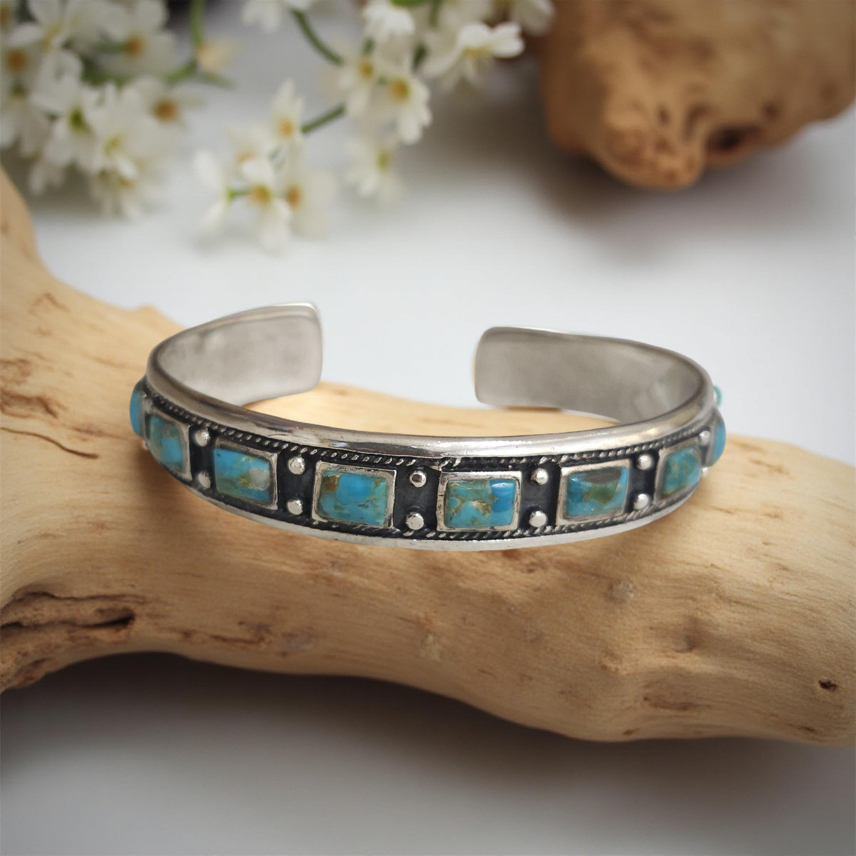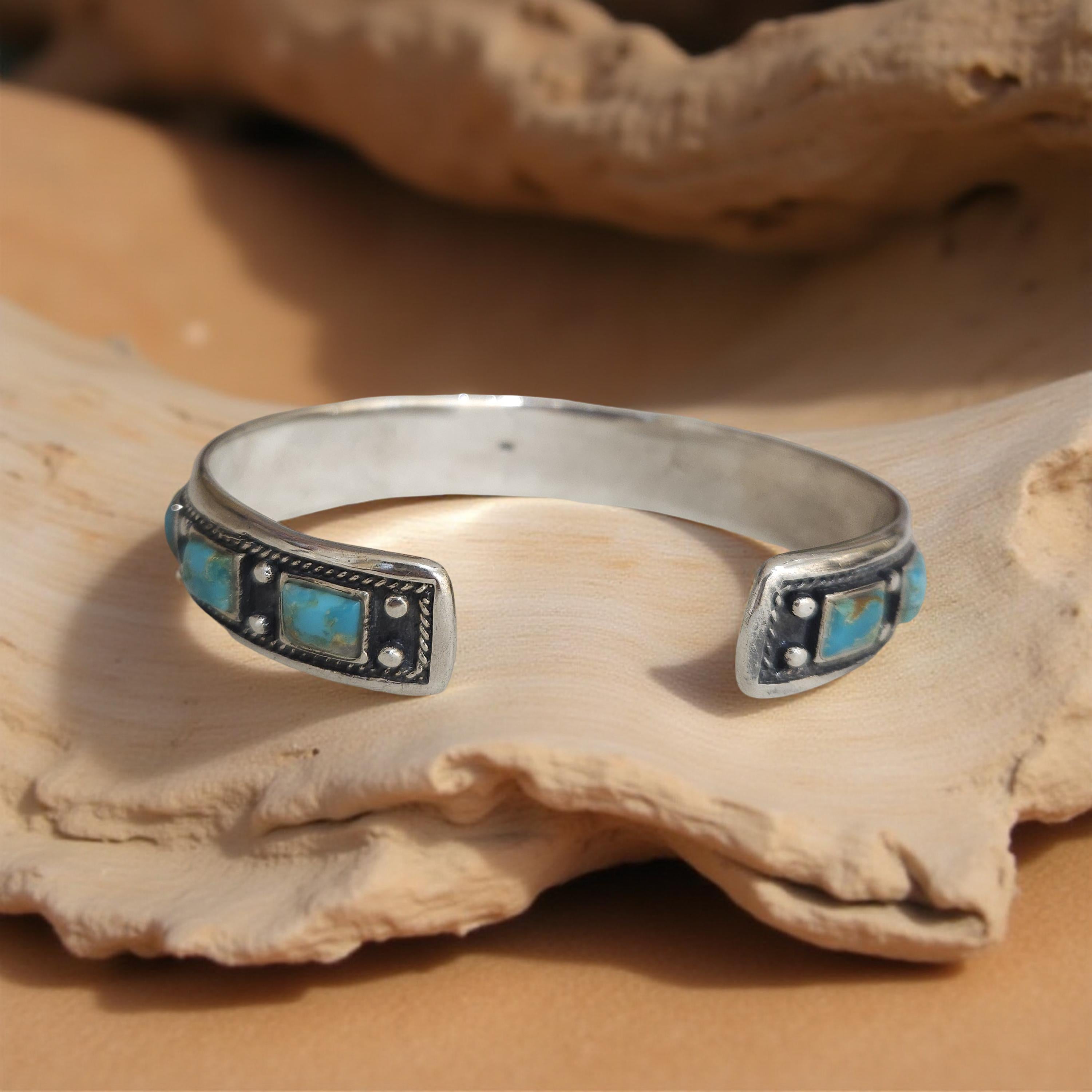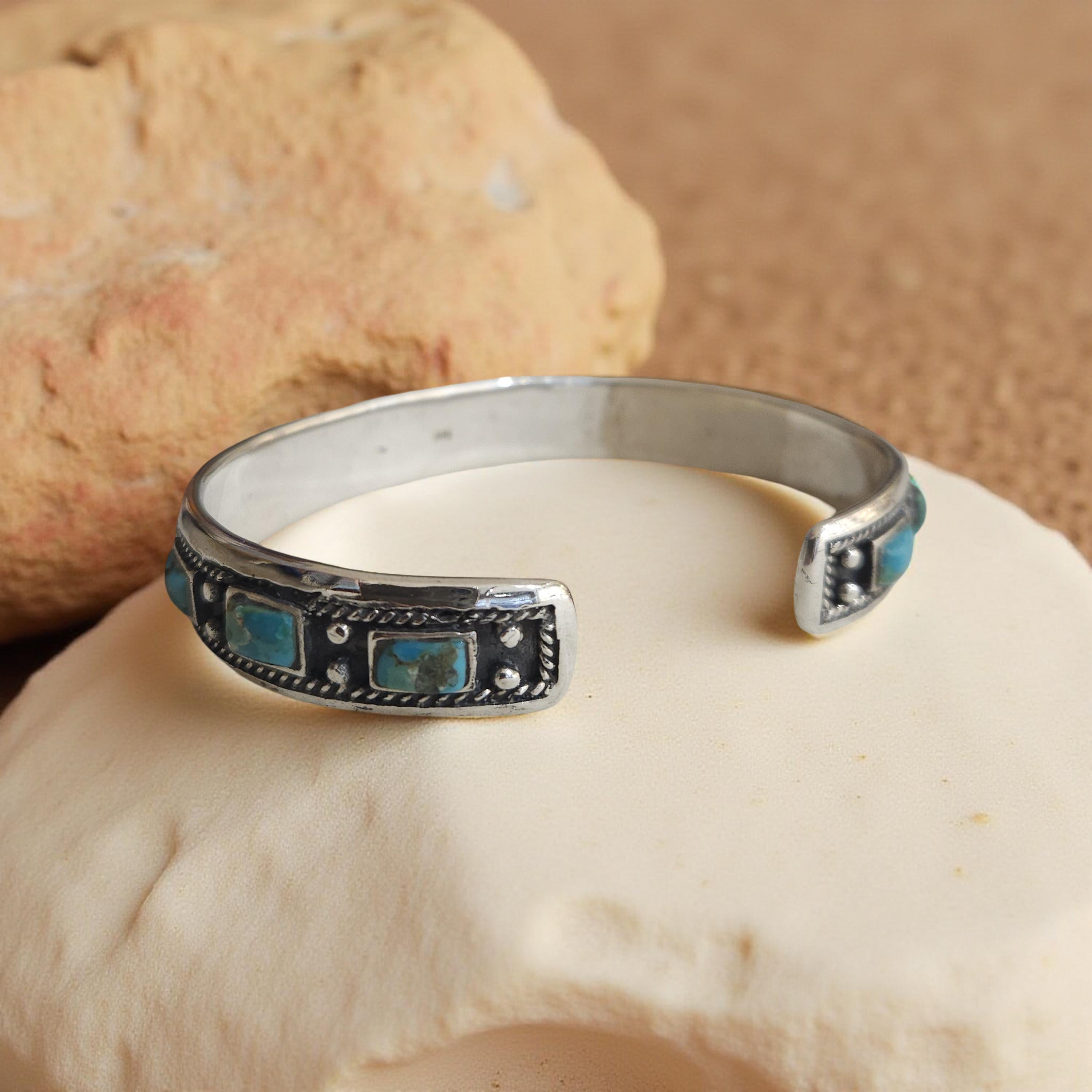 Ce bracelet en argent 925 avec pierre turquoise est le choix parfait pour ajouter une touche de couleur et d'élégance à votre tenue. Fabriqué en argent de qualité, ce bracelet bénéficie de vertus curatives et apaisantes grâce à la pierre turquoise. Un accessoire essentiel pour toutes les occasions.