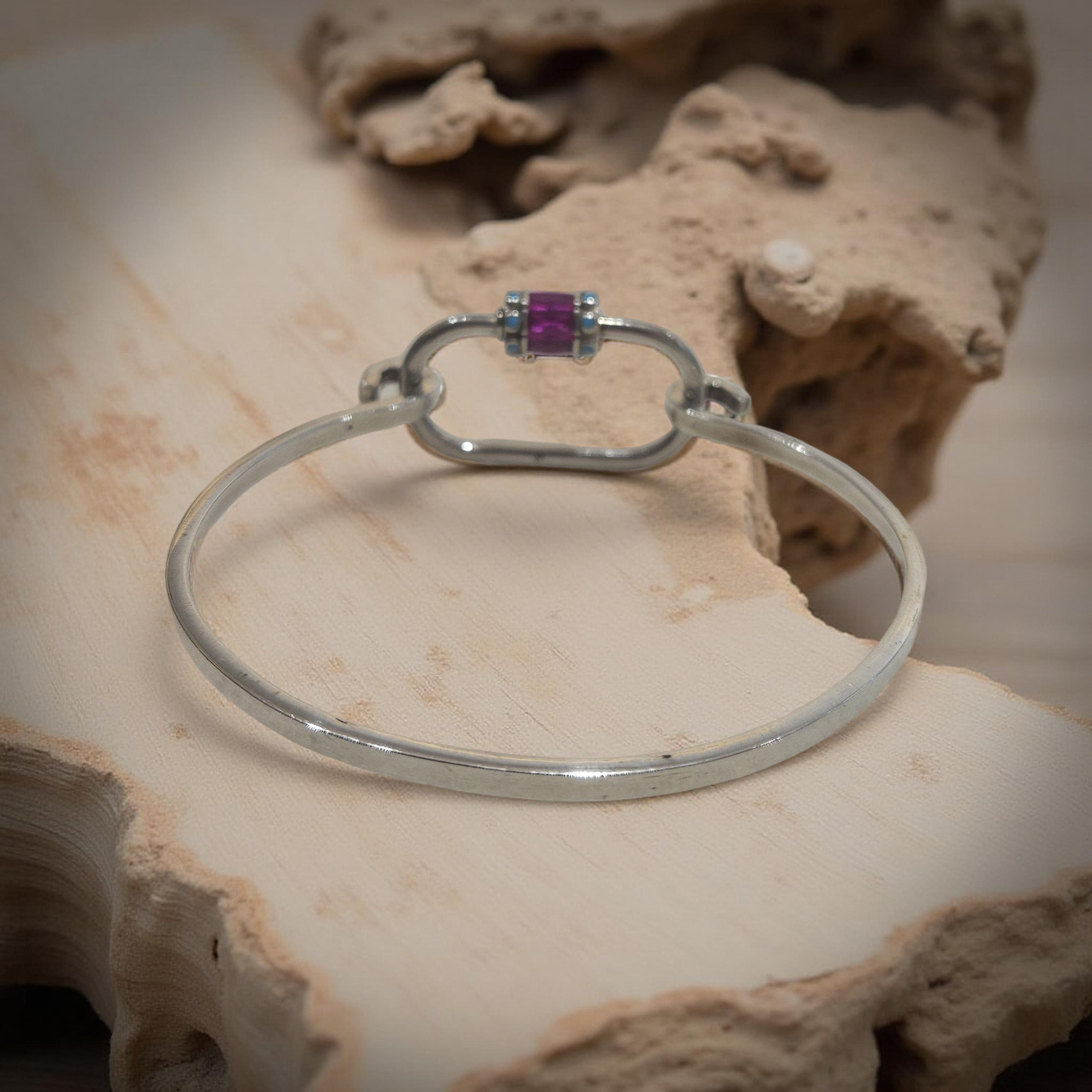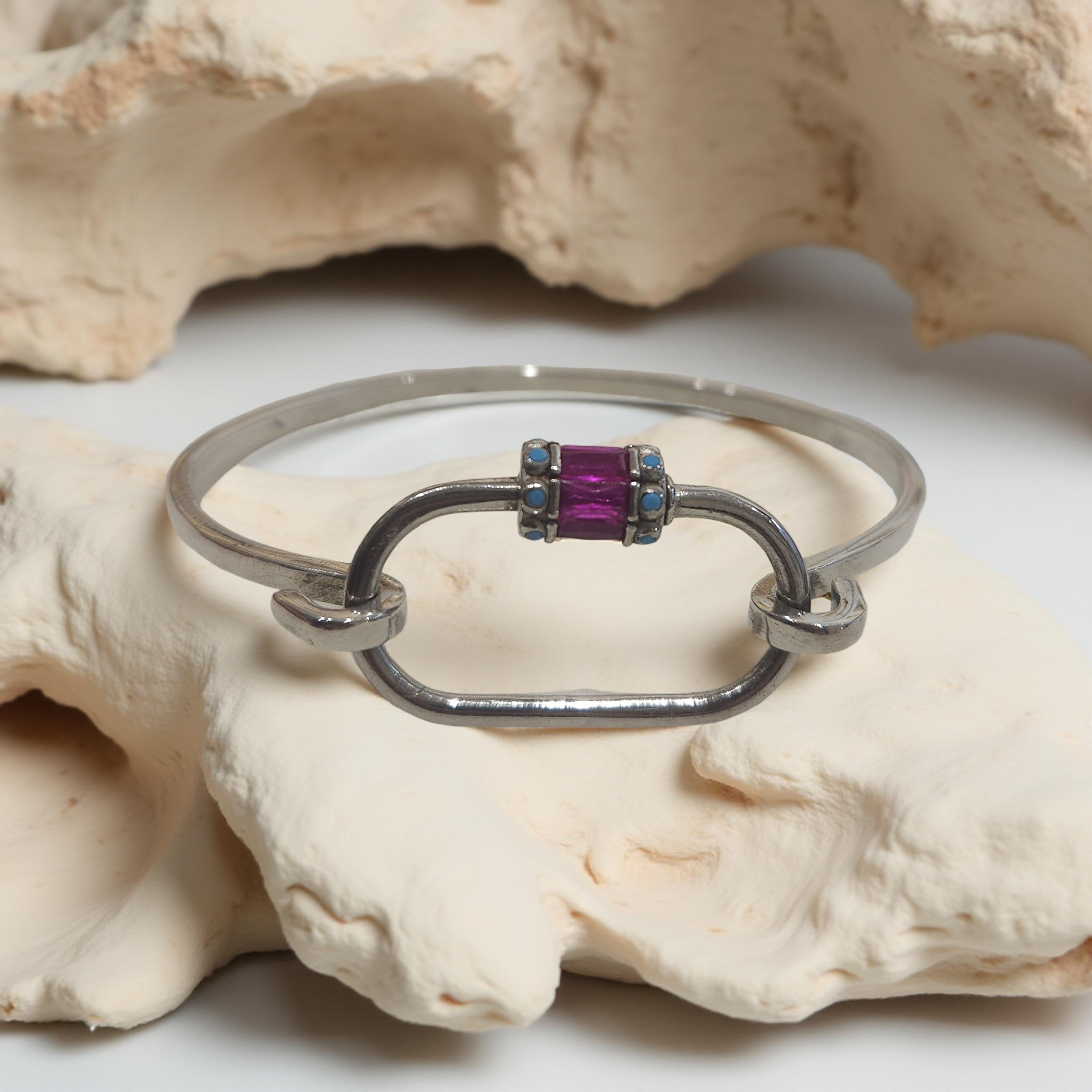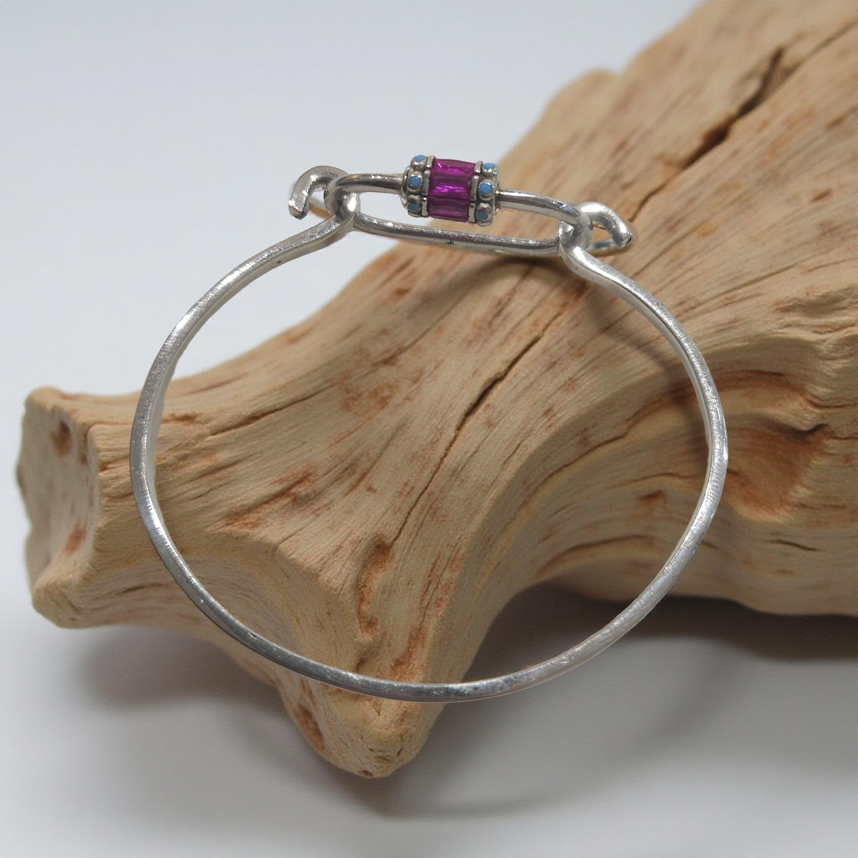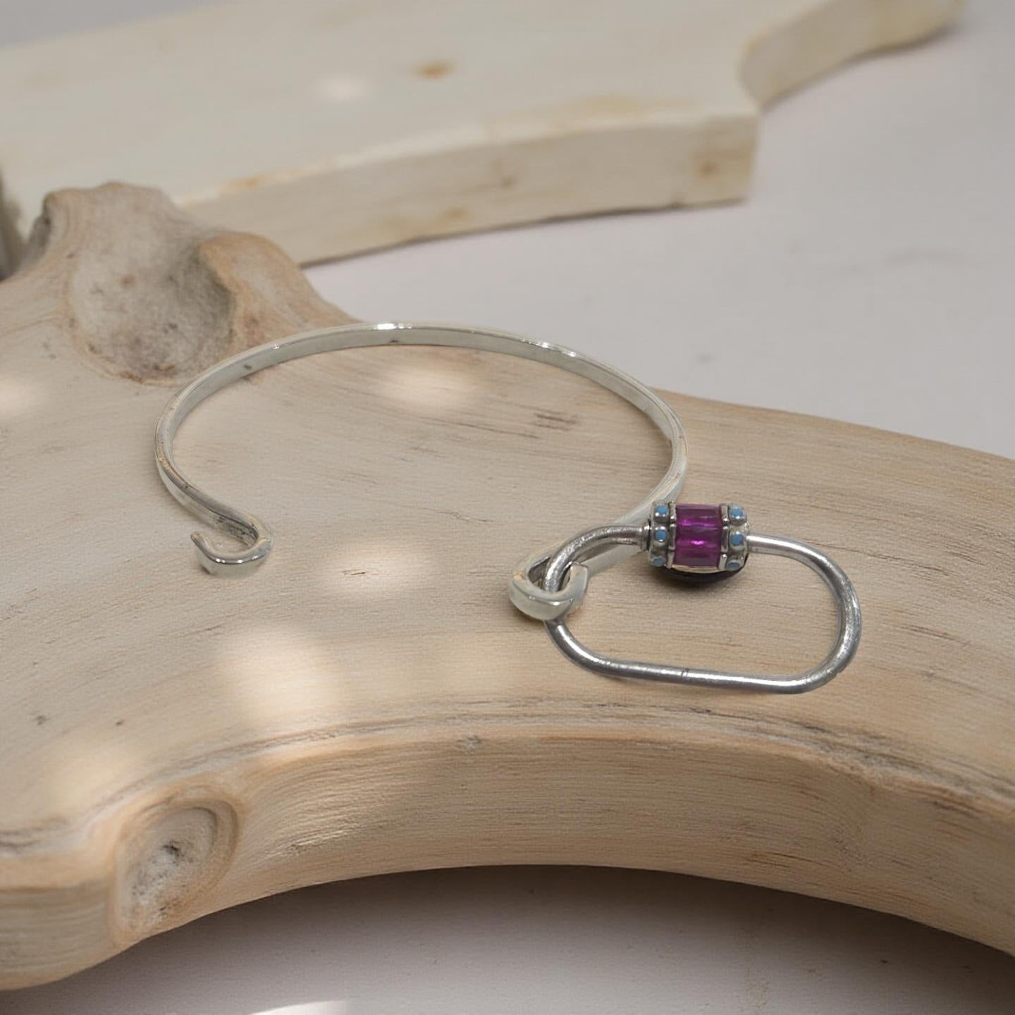 Ce jonc en argent 925 a été conçu avec un design unique et fabriqué à la main. Son mousqueton en argent 925 le rend facile à porter et à enlever. Ajoutez une touche d'élégance à votre tenue avec cet accessoire de qualité supérieure.