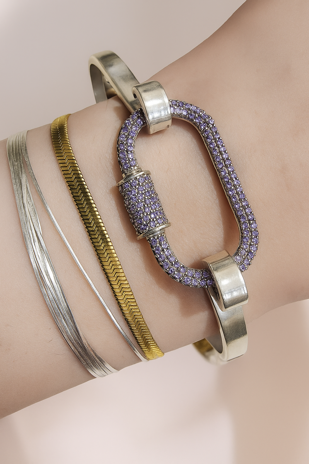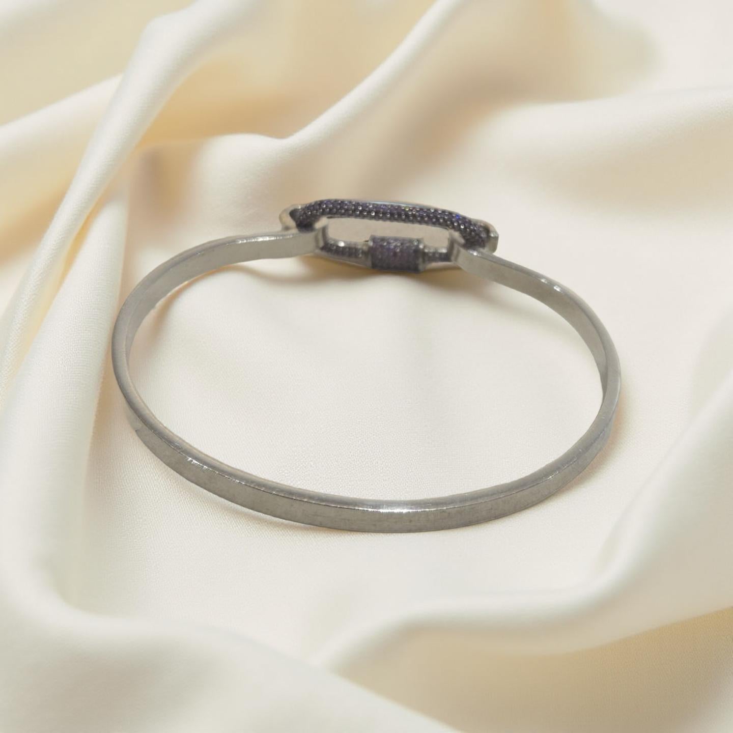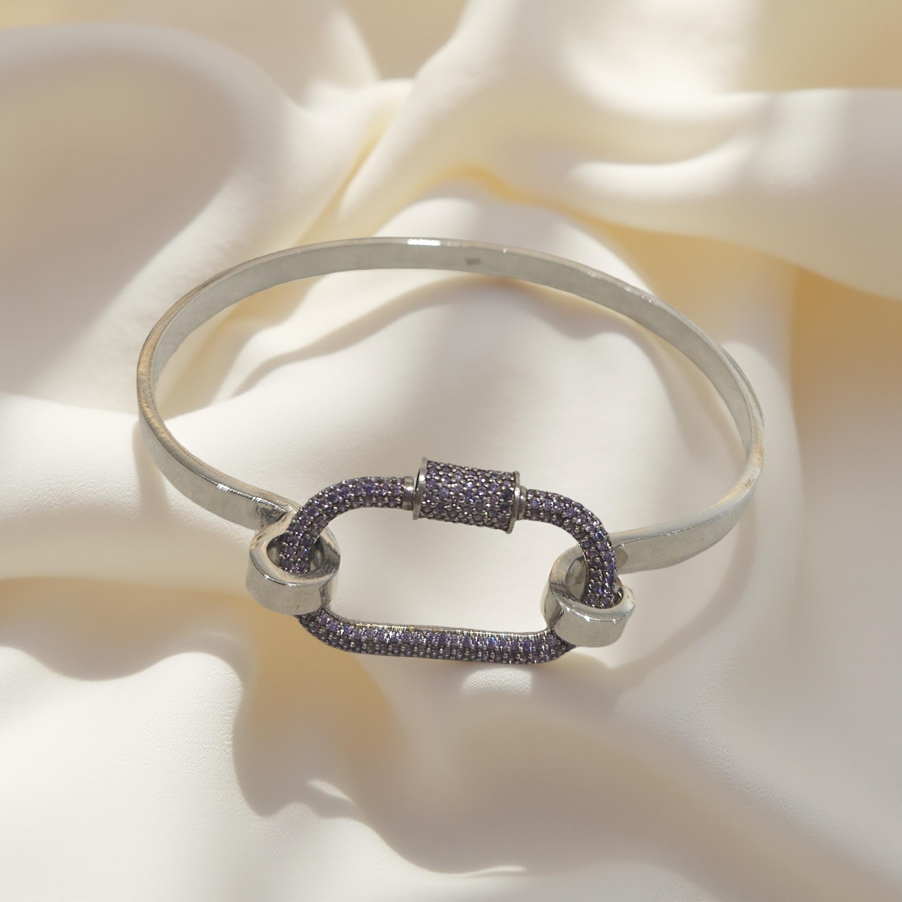 Ce jonc argent 925 est un bijou au design unique, fait main avec précision. Le mousqueton argent 925 orné de strass mauve ajoute une touche d'éclat à cette pièce. Fabriqué en argent de haute qualité, ce jonc est à la fois élégant et durable. Parfait pour compléter n'importe quelle tenue avec une touche de sophistication.