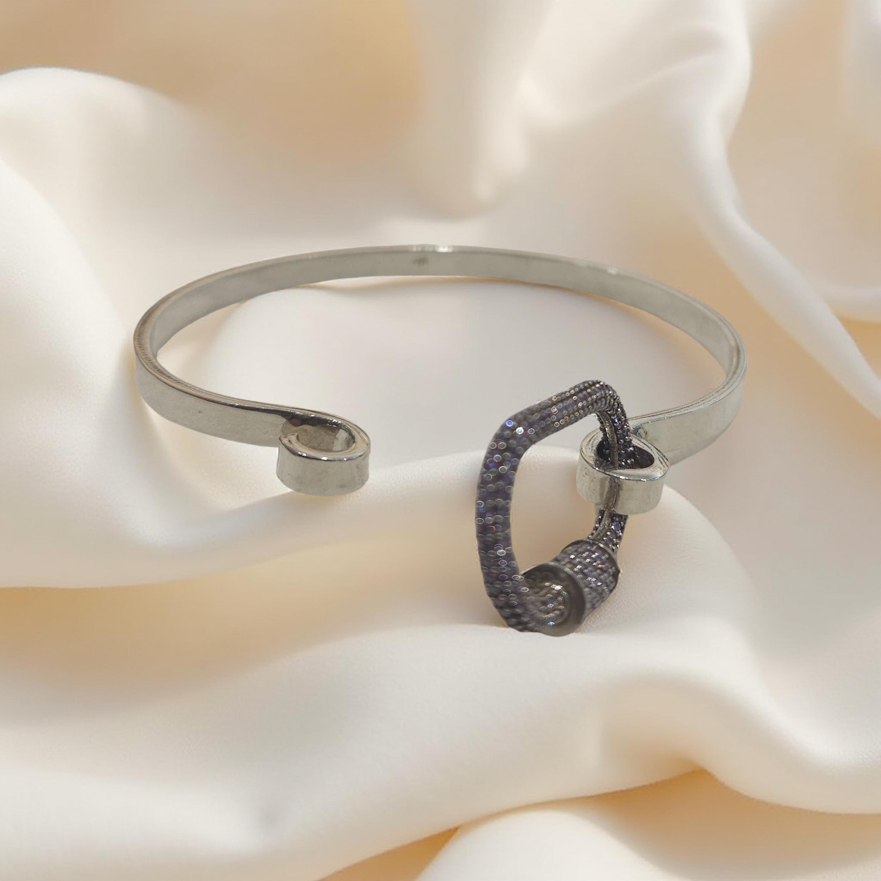 Jonc argent 925 et mousqueton à strass