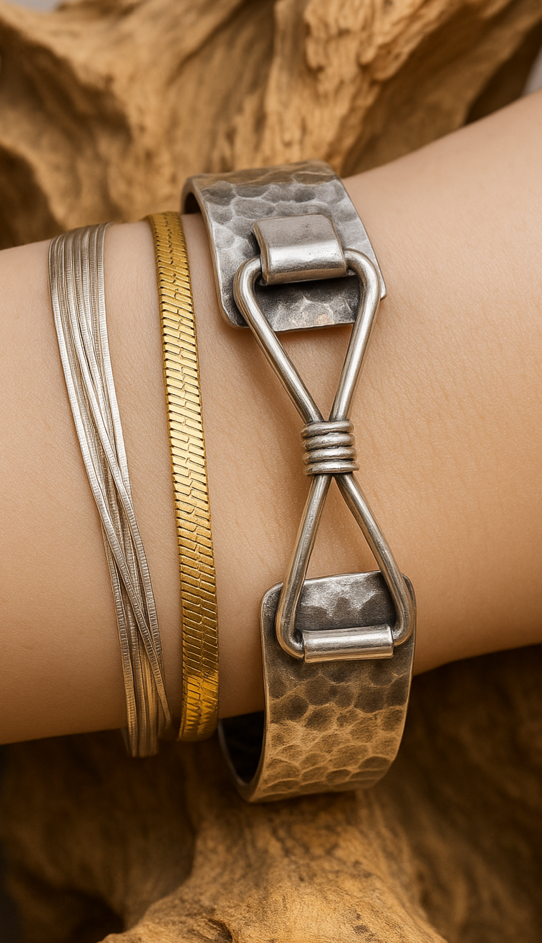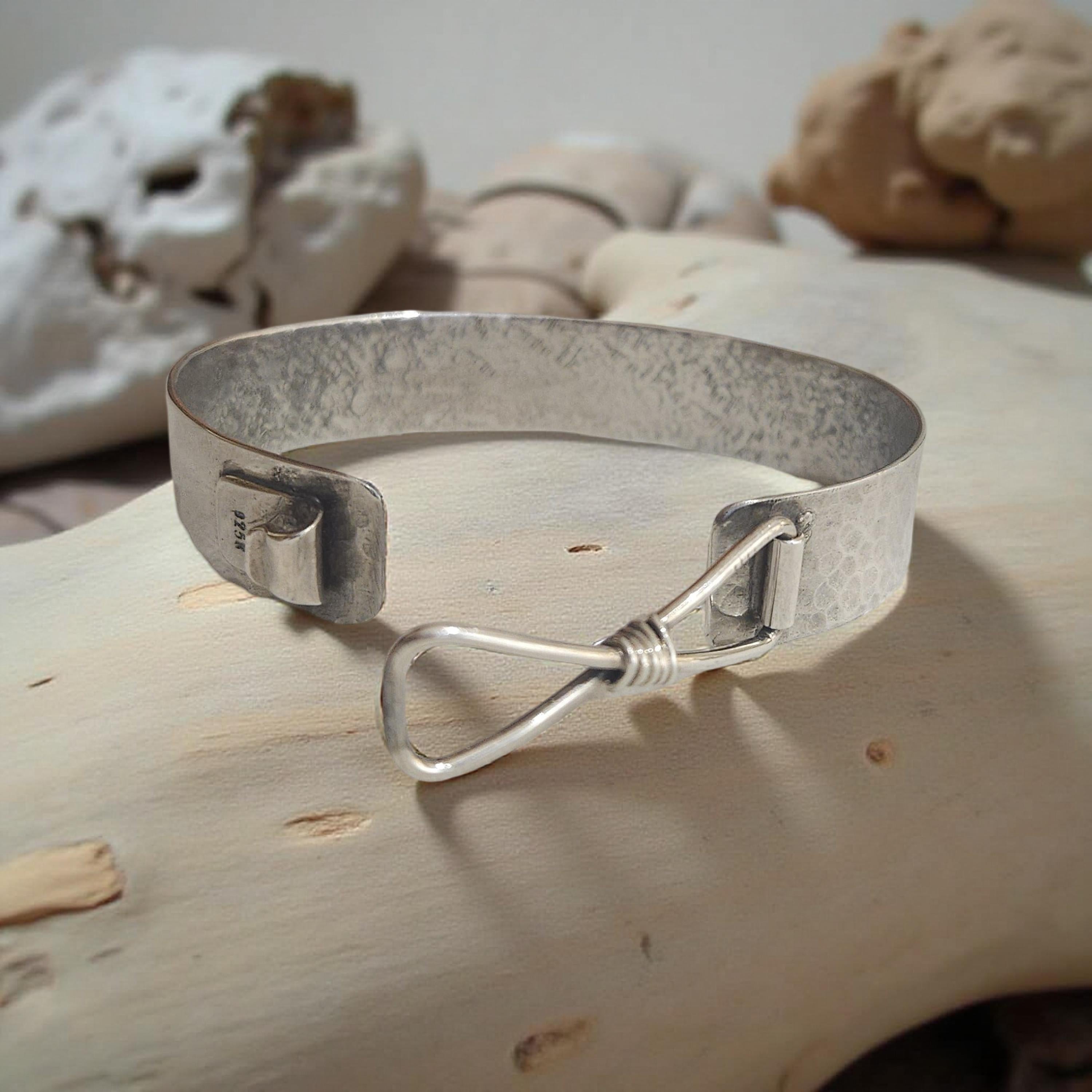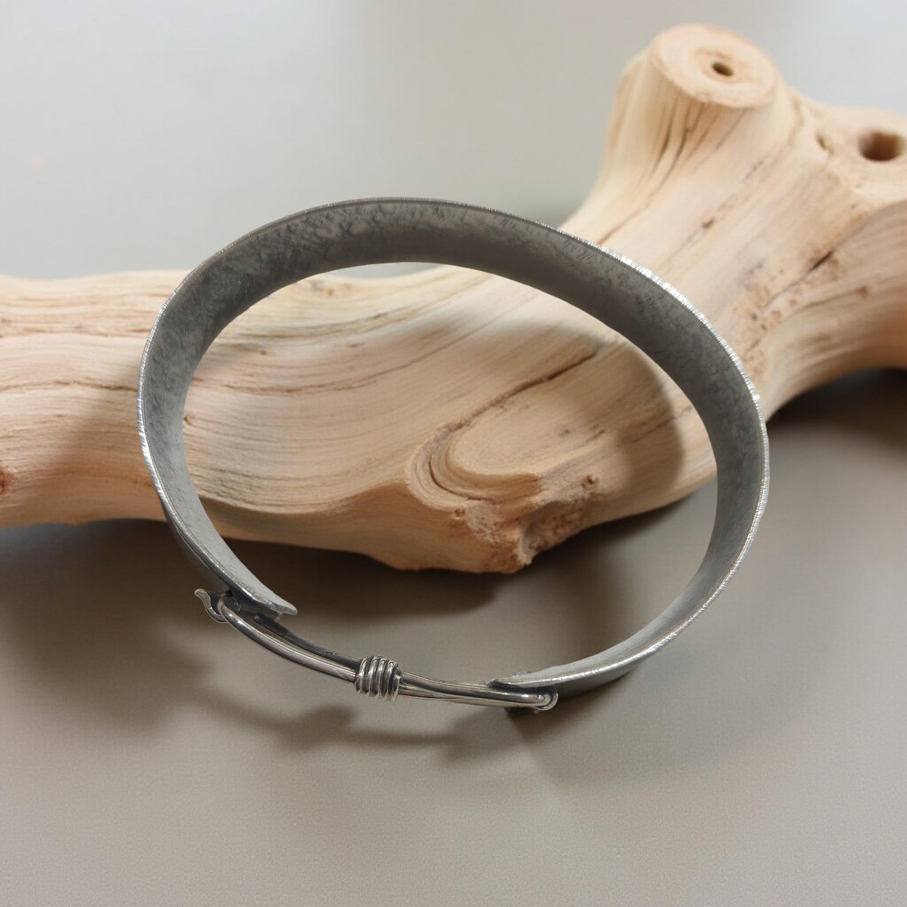 Ce jonc en argent 925 est fabriqué avec soin et précision grâce à son design unique et fait main. Sa forme en signe infini symbolise l'éternité et la continuité, en faisant un cadeau parfait pour un être cher ou pour vous-même. Un ajout intemporel à toute collection de bijoux.