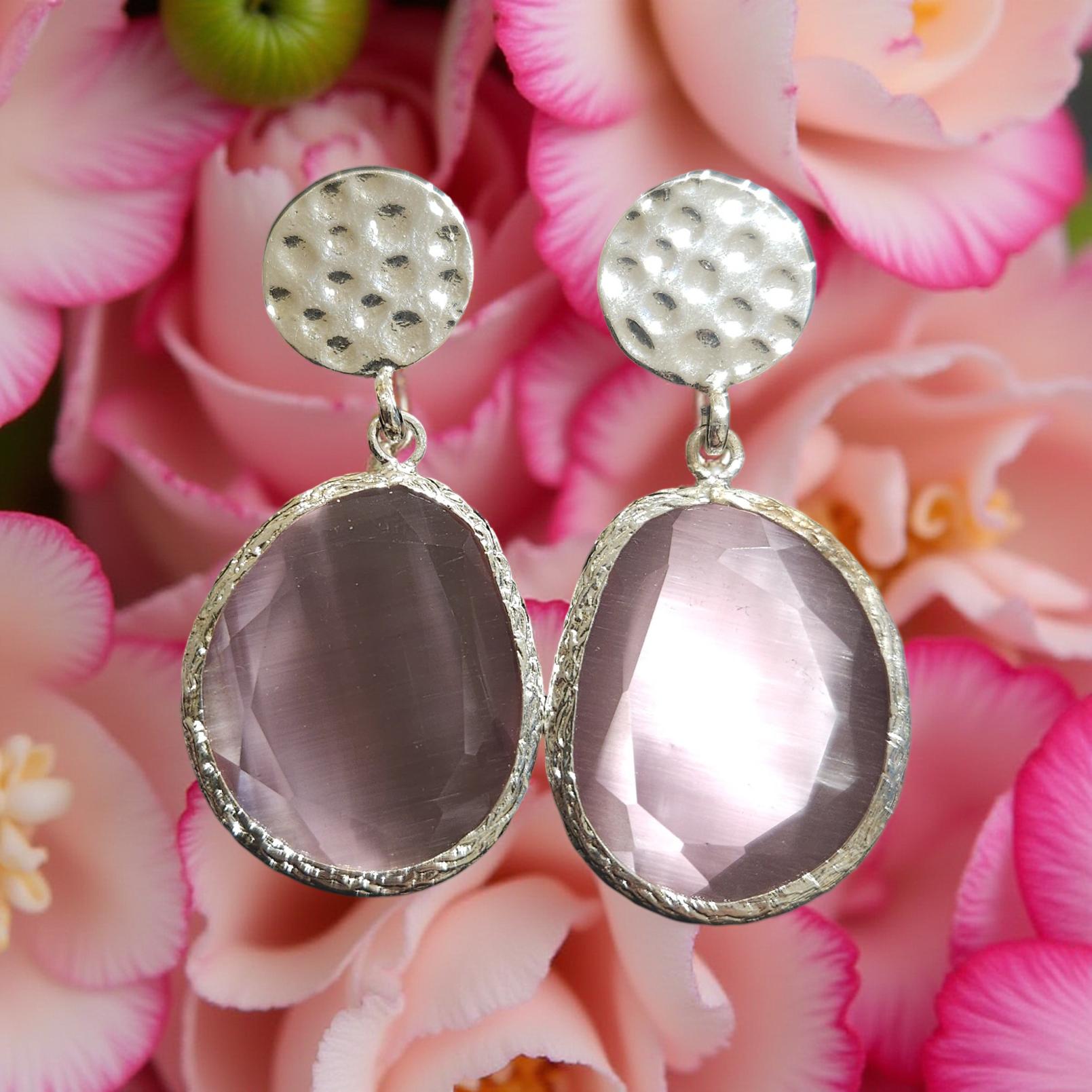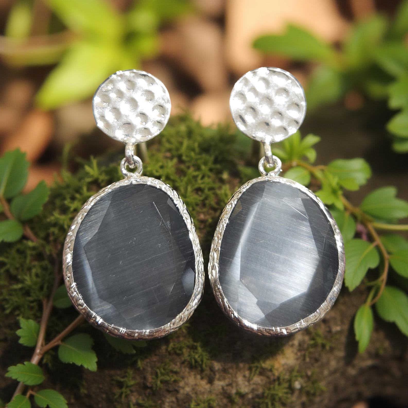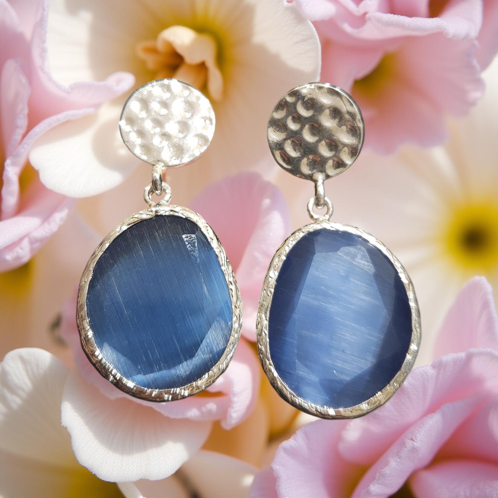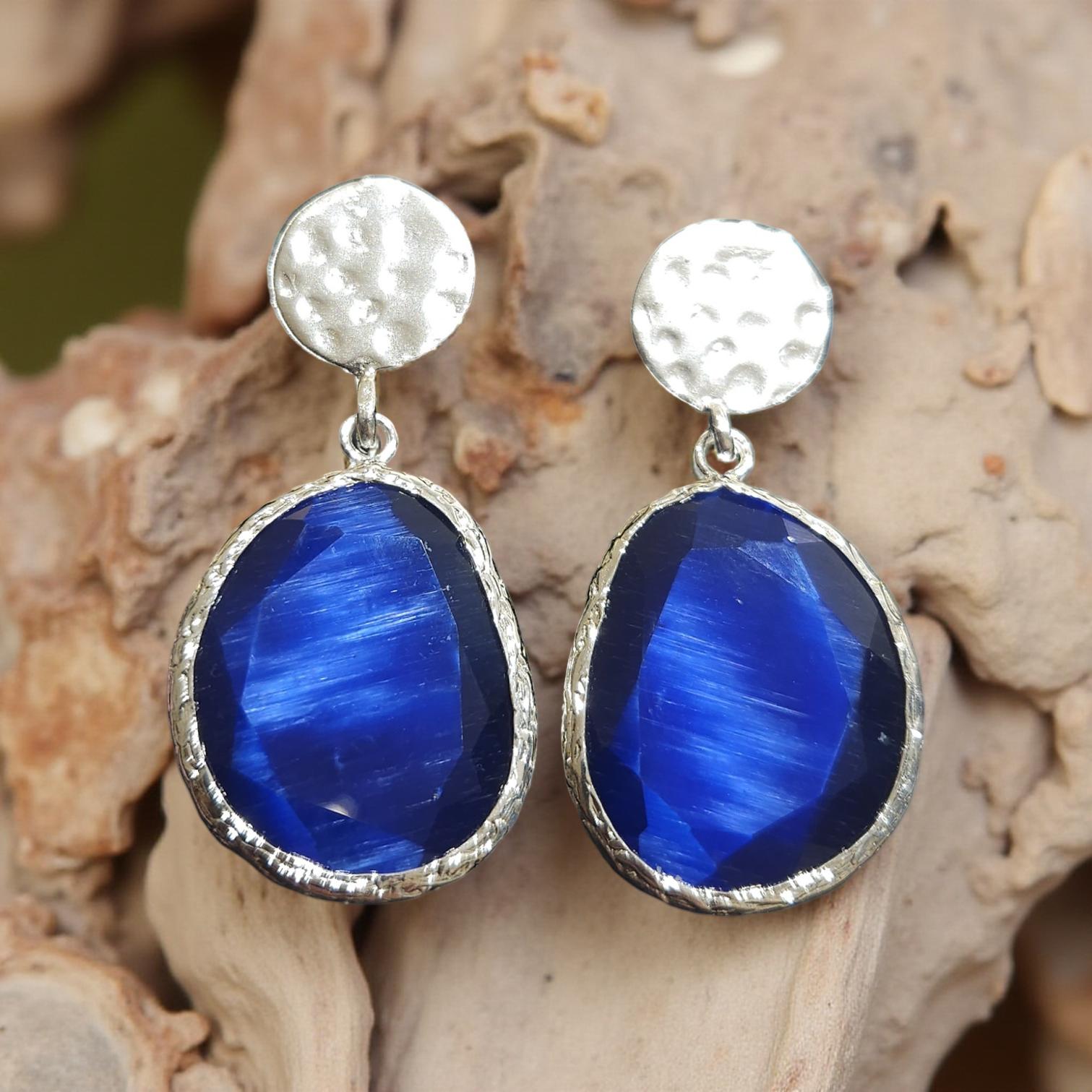 Boucles d'oreilles œil de chat, puces ruche. Divers coloris.